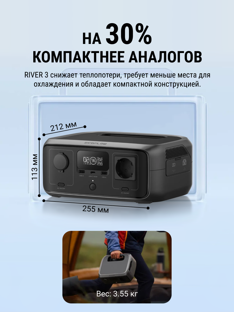Портативная зарядная станция EcoFlow RIVER 3 (245 Втч): сравнение цен, характеристики, фото, актуальное наличие и цены.