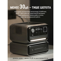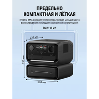 RIVER 3 Max сочетает высокую эффективность и мобильность. Её ёмкость 572 Втч обеспечивает длительное питание гаджетов, бытовых приборов и даже туристического оборудования. При этом станция сохраняет компактность: вес всего 8 кг и габариты 234 x 224 × 255 мм делают её идеальной для транспортировки.