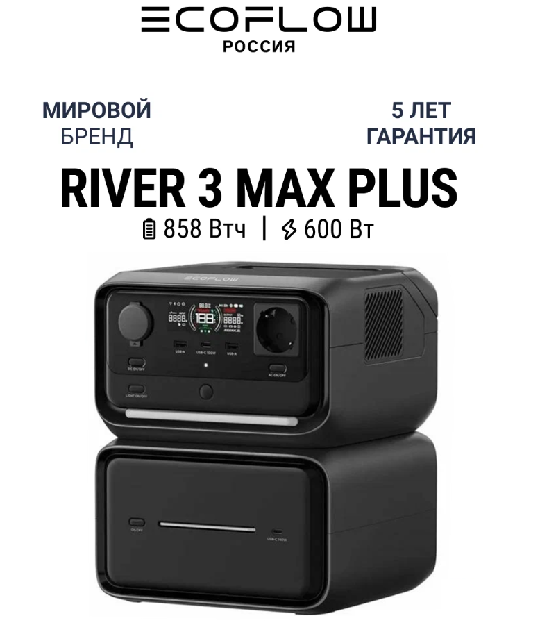 Купить Портативная зарядная станция EcoFlow RIVER 3 Max Plus 858 Втч с доставкой по всей России. Портативная зарядная станция EcoFlow RIVER 3 Max Plus 858 Втч: сравнение цен, характеристики, фото, актуальное наличие и цены.