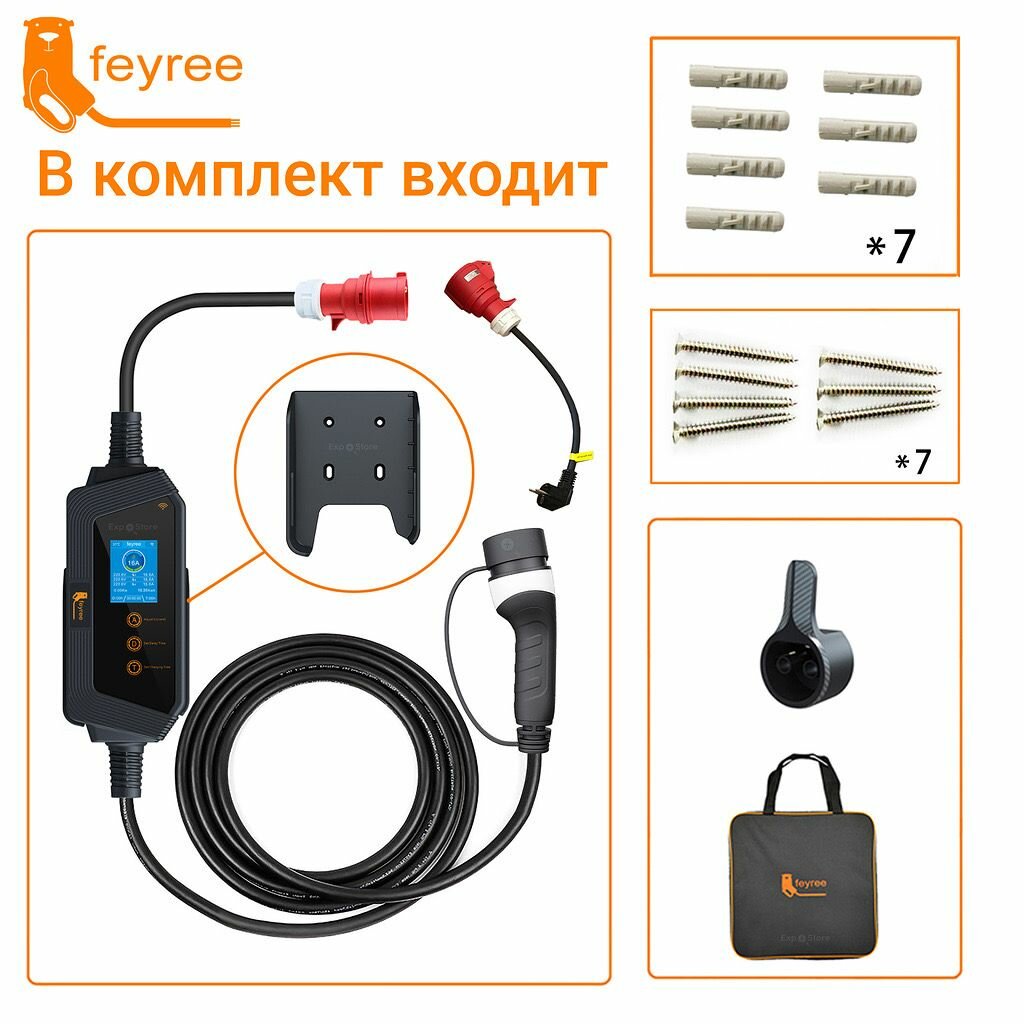 Купить Портативная зарядная станция Feyree Type2 11 квт IP66 5М кабель WiFi адаптер 220V 2 настенных крепления сумка с доставкой по всей России.