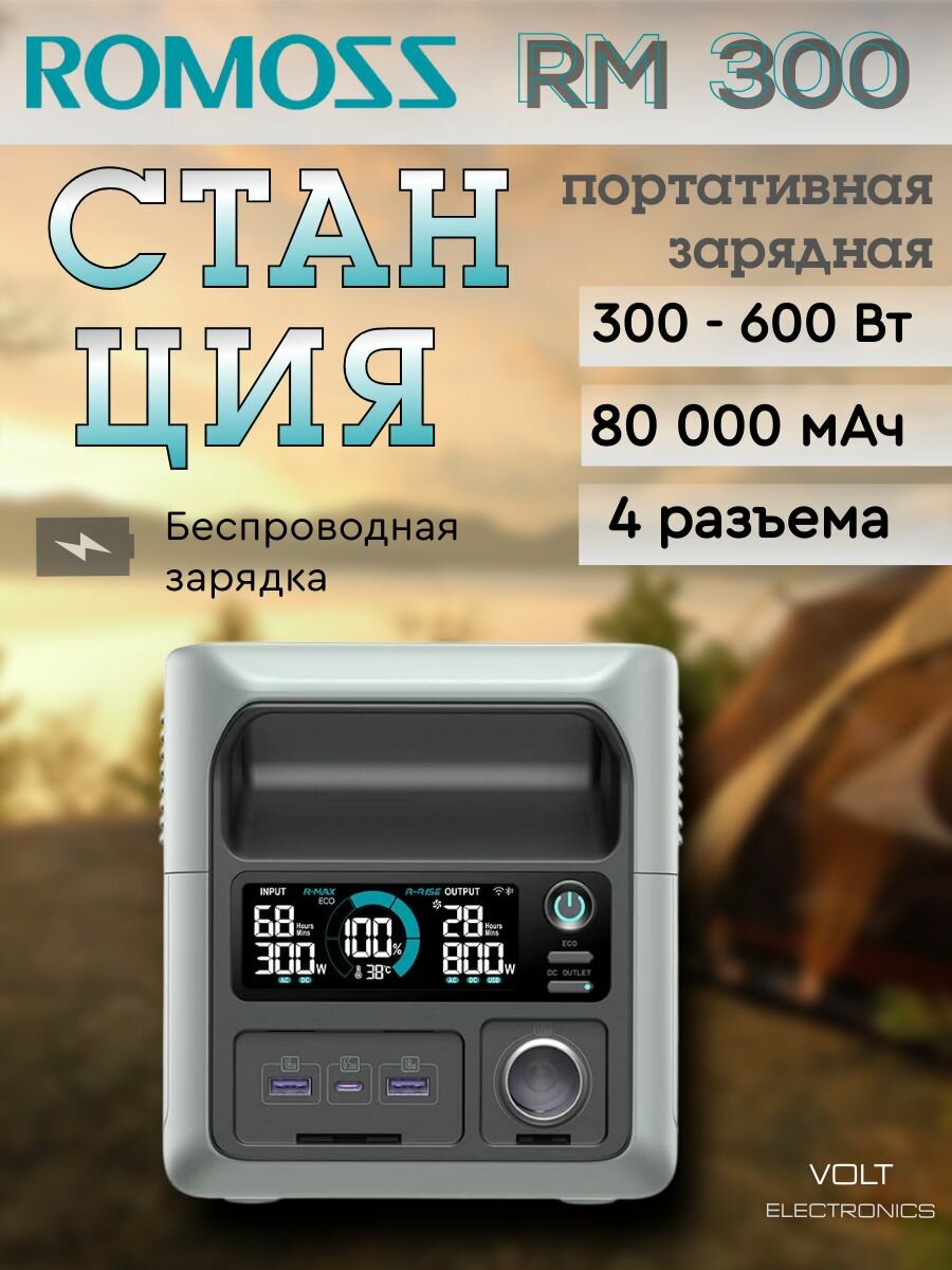 Портативная зарядная станция Romoss RM300 (емкость 256 Втч | технология HyperCharge | мощность до 600 Вт | R-UPS)