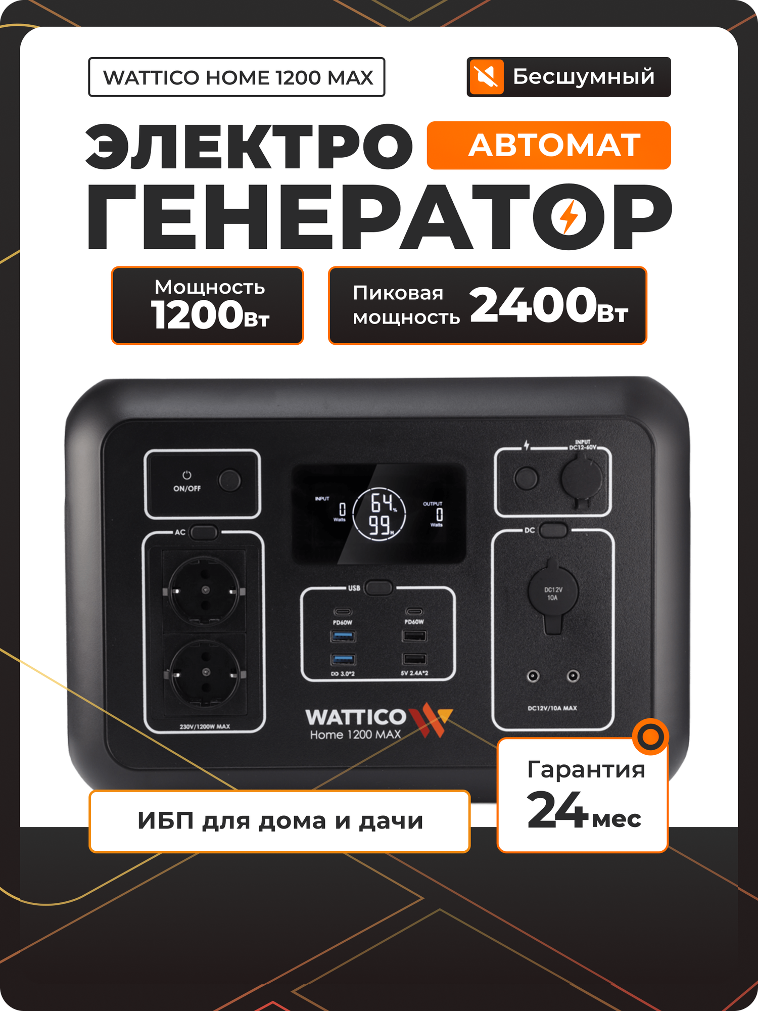 Купить Портативная электростанция станция для дома и дачи WATTICO Home 1200 MAX, 1.2 кВт powerbank c розеткой 220 с доставкой по всей России.