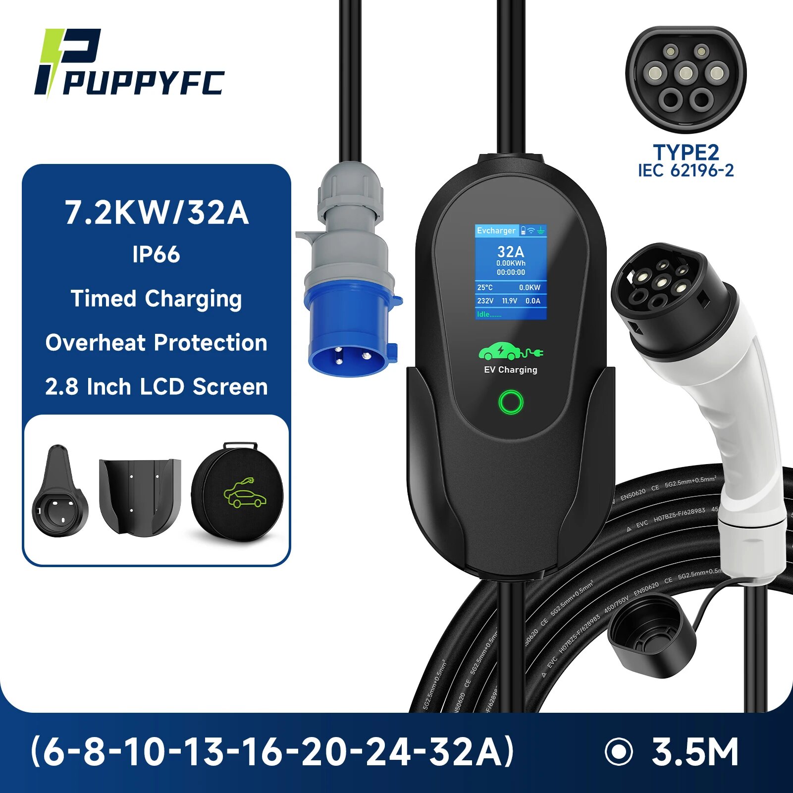 Купить Портативное зарядное устройство для электромобилей Puppyfc, 7,2 кВт, 32 А, тип 2/кабель для быстрой зарядки, IP66, защита от перегрузки, управление Wi-Fi для электромобиля, Type2 7.2KW 3.5M с доставкой по всей России.