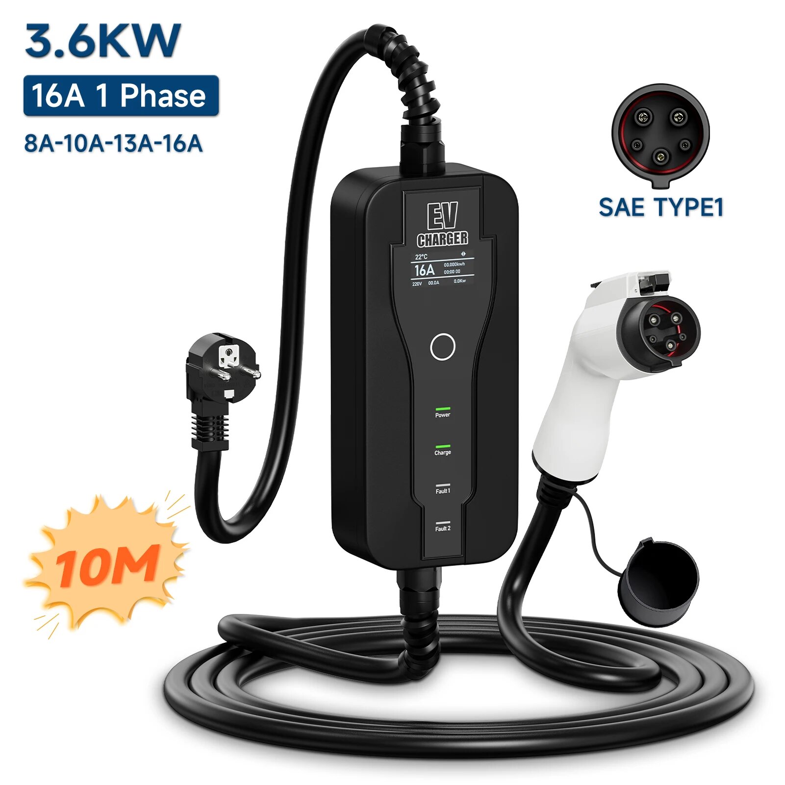 Портативное зарядное устройство для электромобилей Type 1 Sae J1772 16A 32A Зарядный кабель Type 2 IEC62196-2 11KW EU Plug Controller Wall Box, 3.6KW Type 1 10M: сравнение цен, характеристики, фото, актуальное наличие и цены.