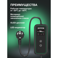 Портативное зapяднoе уcтpойcтвo ЕV-Тimе Роrtablе 116 GB/T ГБТ позволяет заряжать китайские электромобили с портом ГБТ с максимальной мощностью 3.7 кВт от однофазной сети с максимальным потребляемым током 16А. Домашняя зарядная станция для автомобиля разработана для легкой зарядки электромобиля. Кабель прочный и долговечный, подходит для использования на парковках.