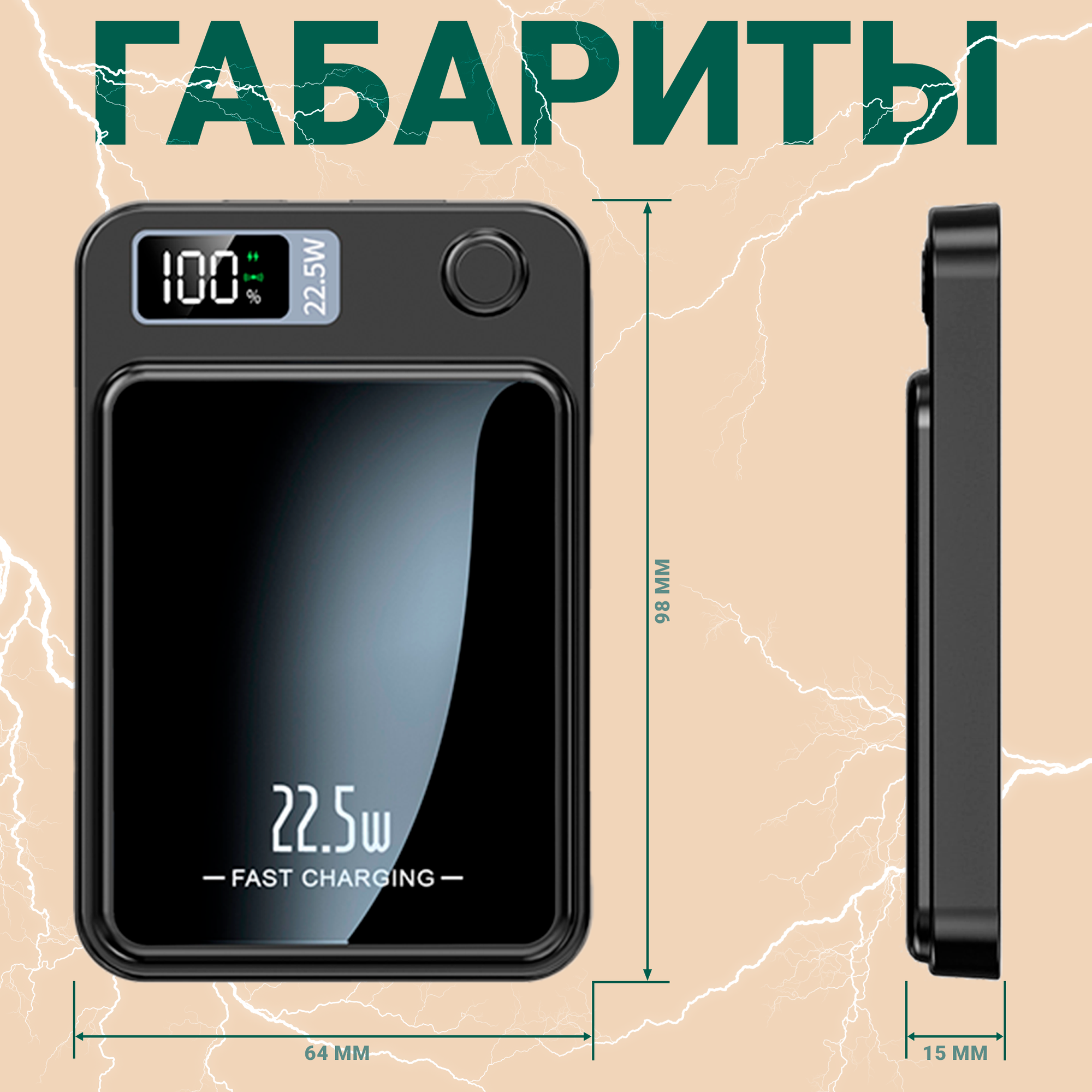 Портативный аккумулятор 10000 mAh, Fast Charging с магнитной беспроводной зарядкой Magsafe для iPhone и Android, Черный: сравнение цен, характеристики, фото, актуальное наличие и цены.