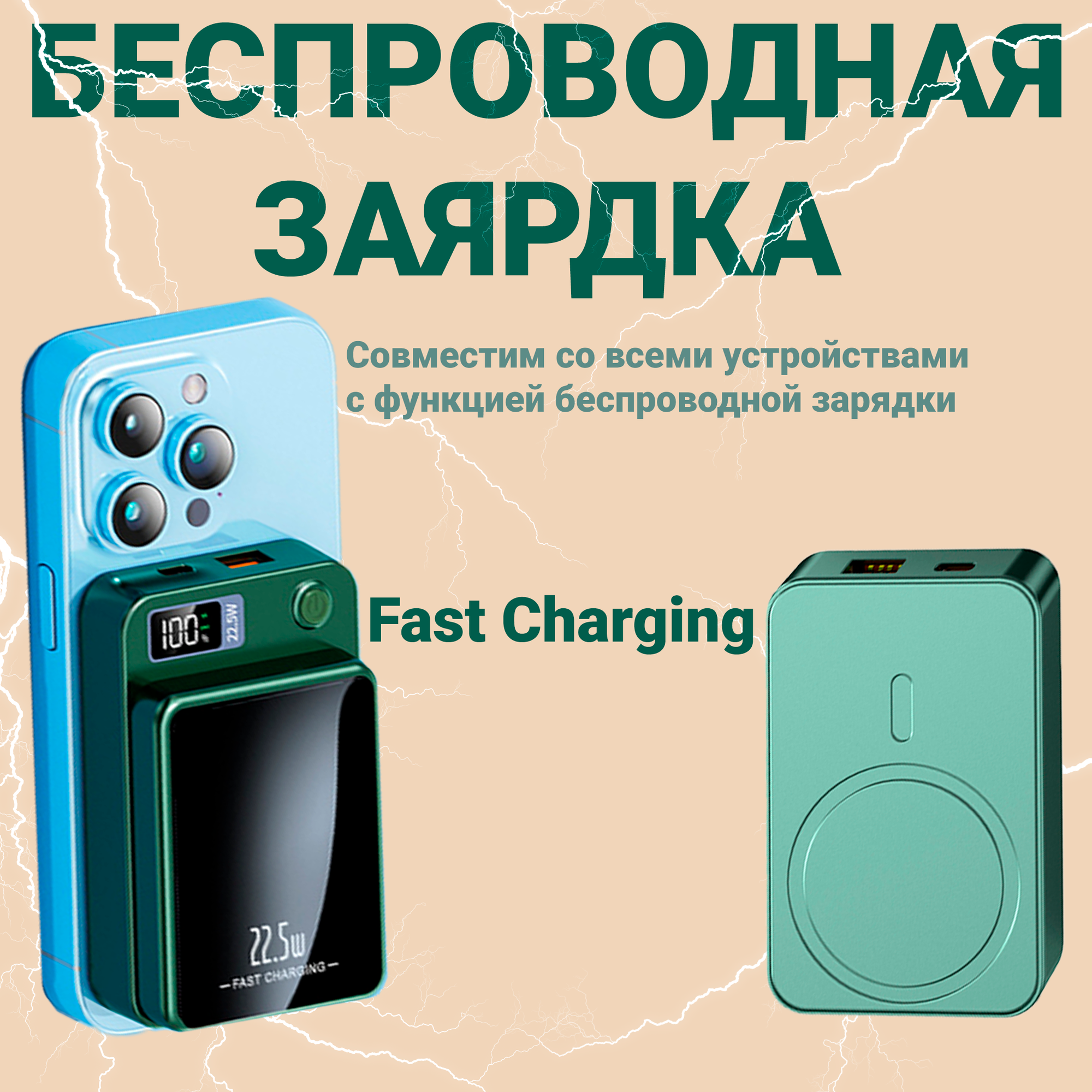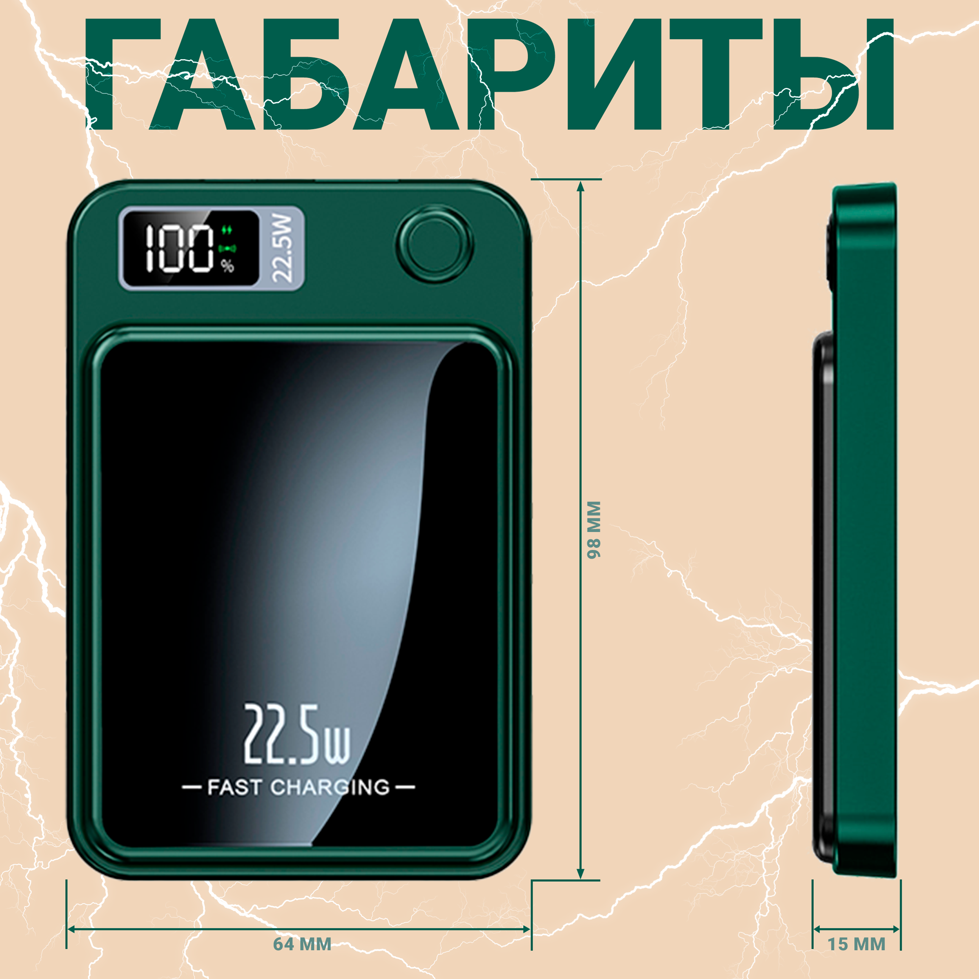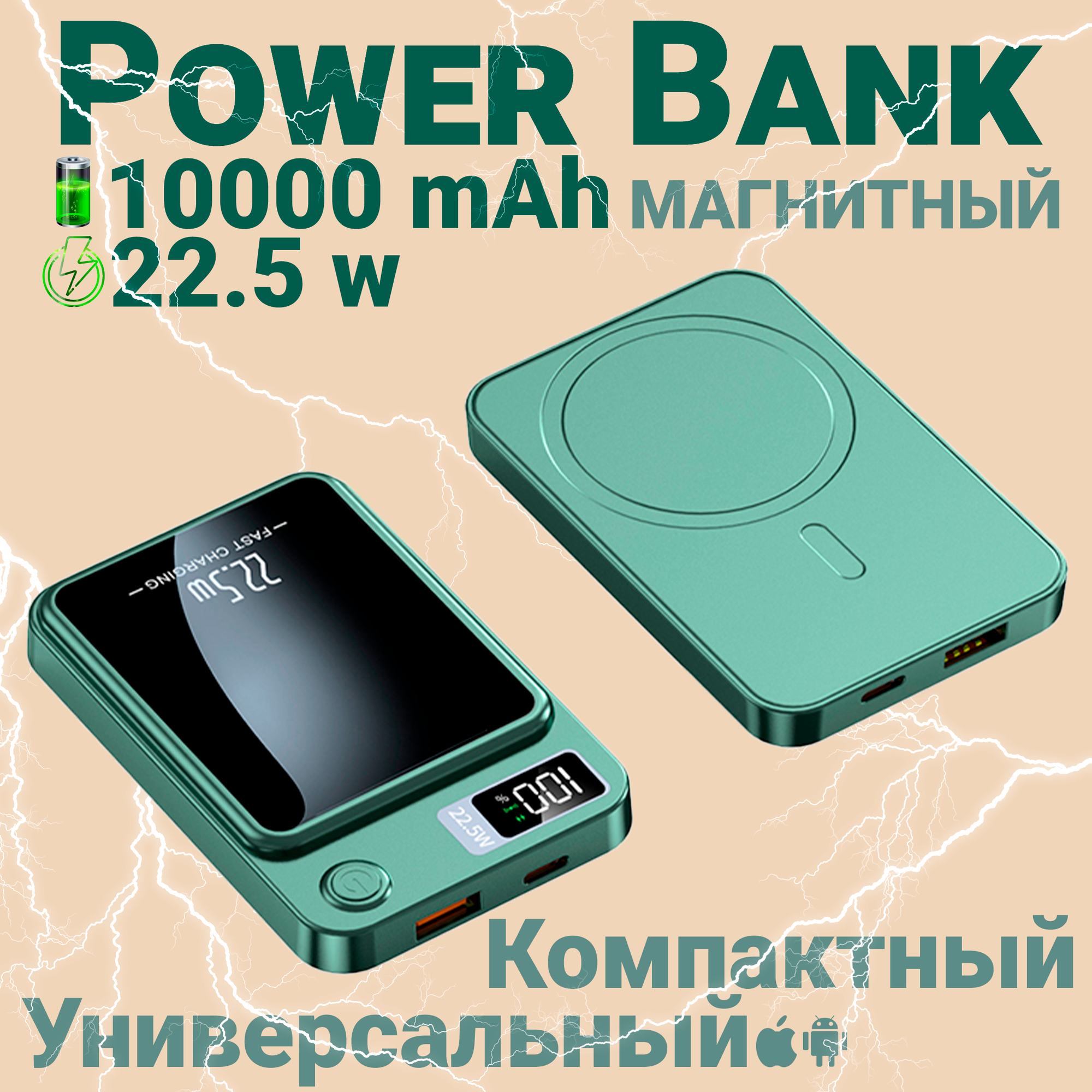 Портативный аккумулятор 10000 mAh, Fast Charging с магнитной беспроводной зарядкой Magsafe для iPhone и Android, Зеленый: сравнение цен, характеристики, фото, актуальное наличие и цены.