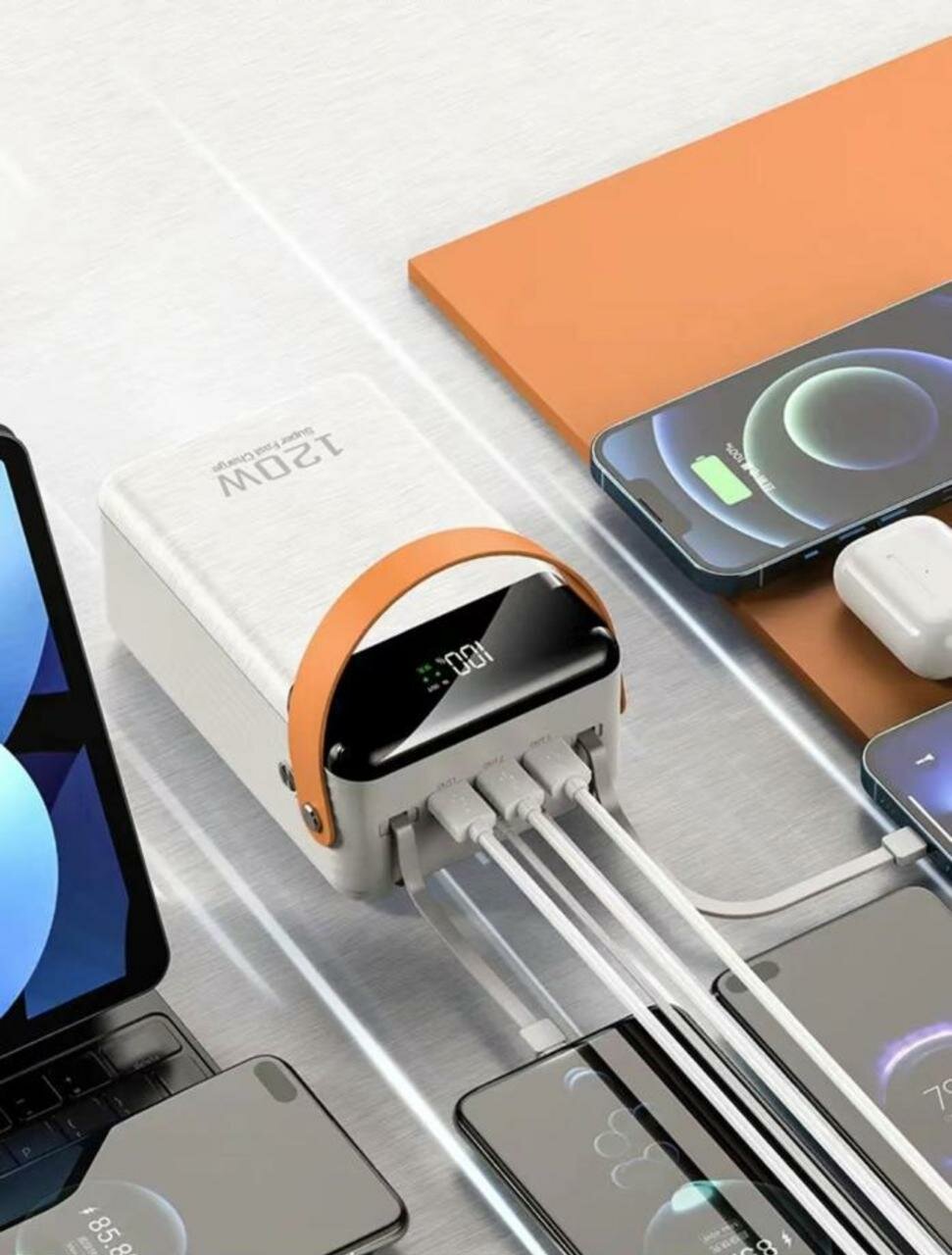 Портативный аккумулятор, 120 тыс. мАч, с быстрой зарядкой, чёрный
