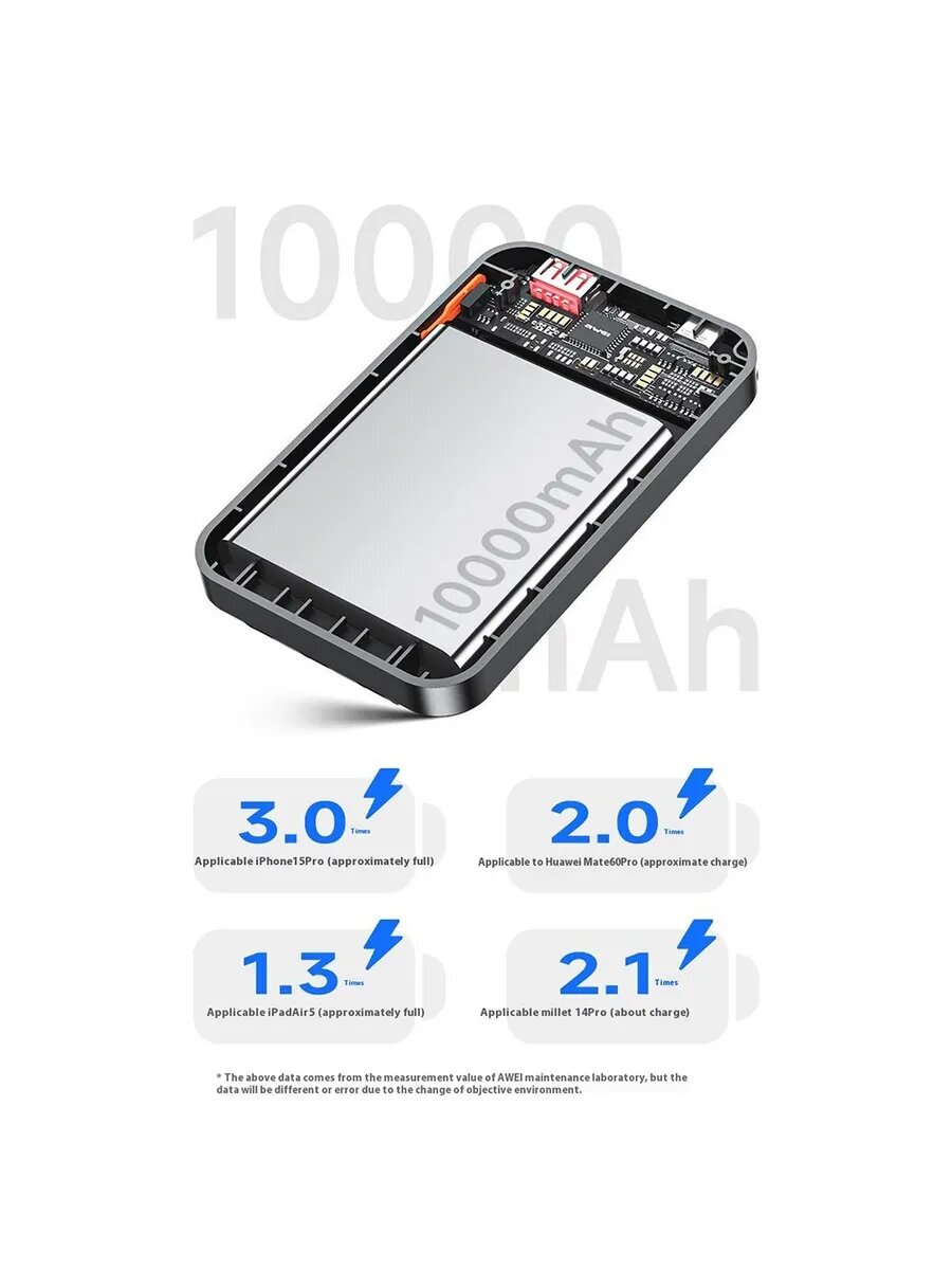 Портативный аккумулятор Awei P-64K, 10000мАч, 3 порта, черный: сравнение цен, характеристики, фото, актуальное наличие и цены.