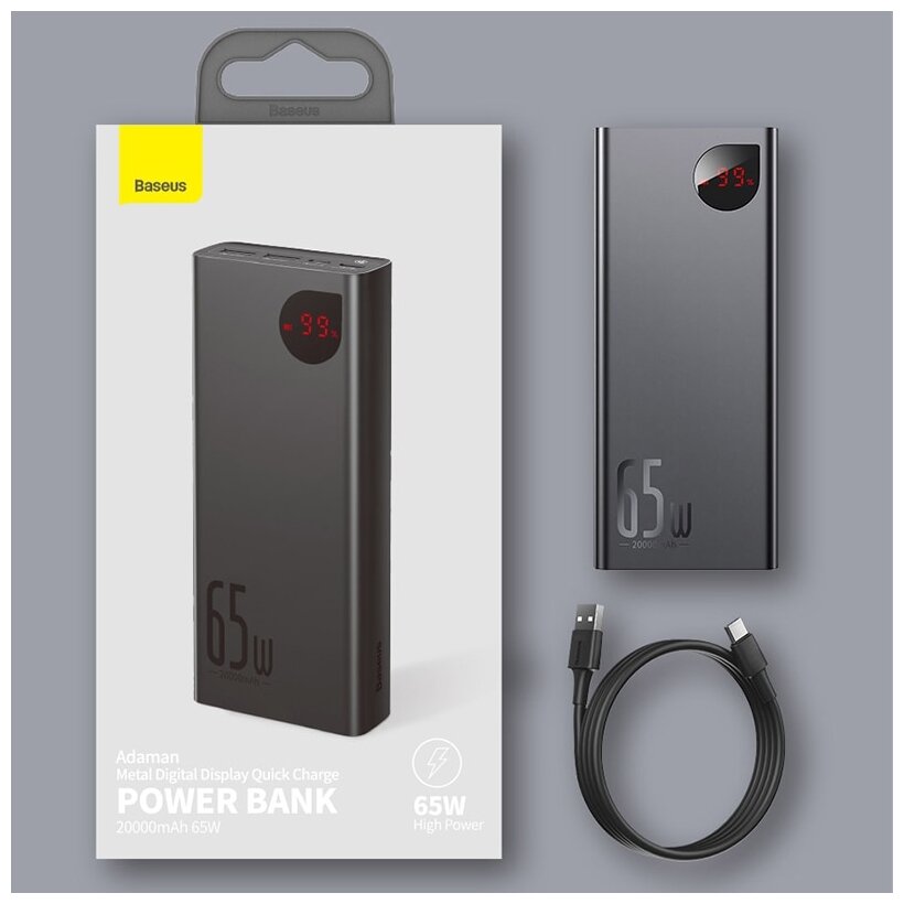 Купить Портативный аккумулятор Baseus Adaman Metal Digital Display Quick Charge 65W 20000 мАч, цвет Черный (PPIMDA-D01) с доставкой по всей России.