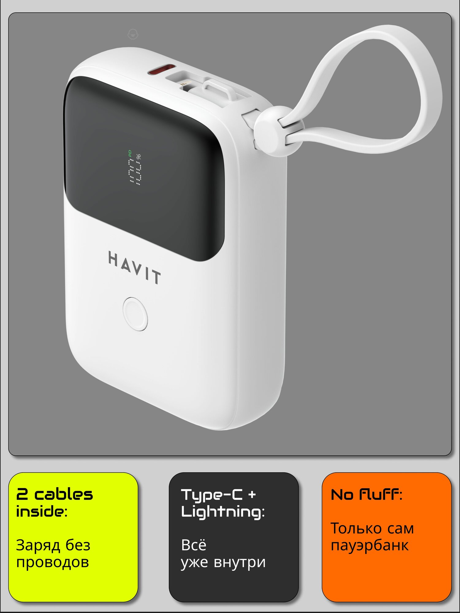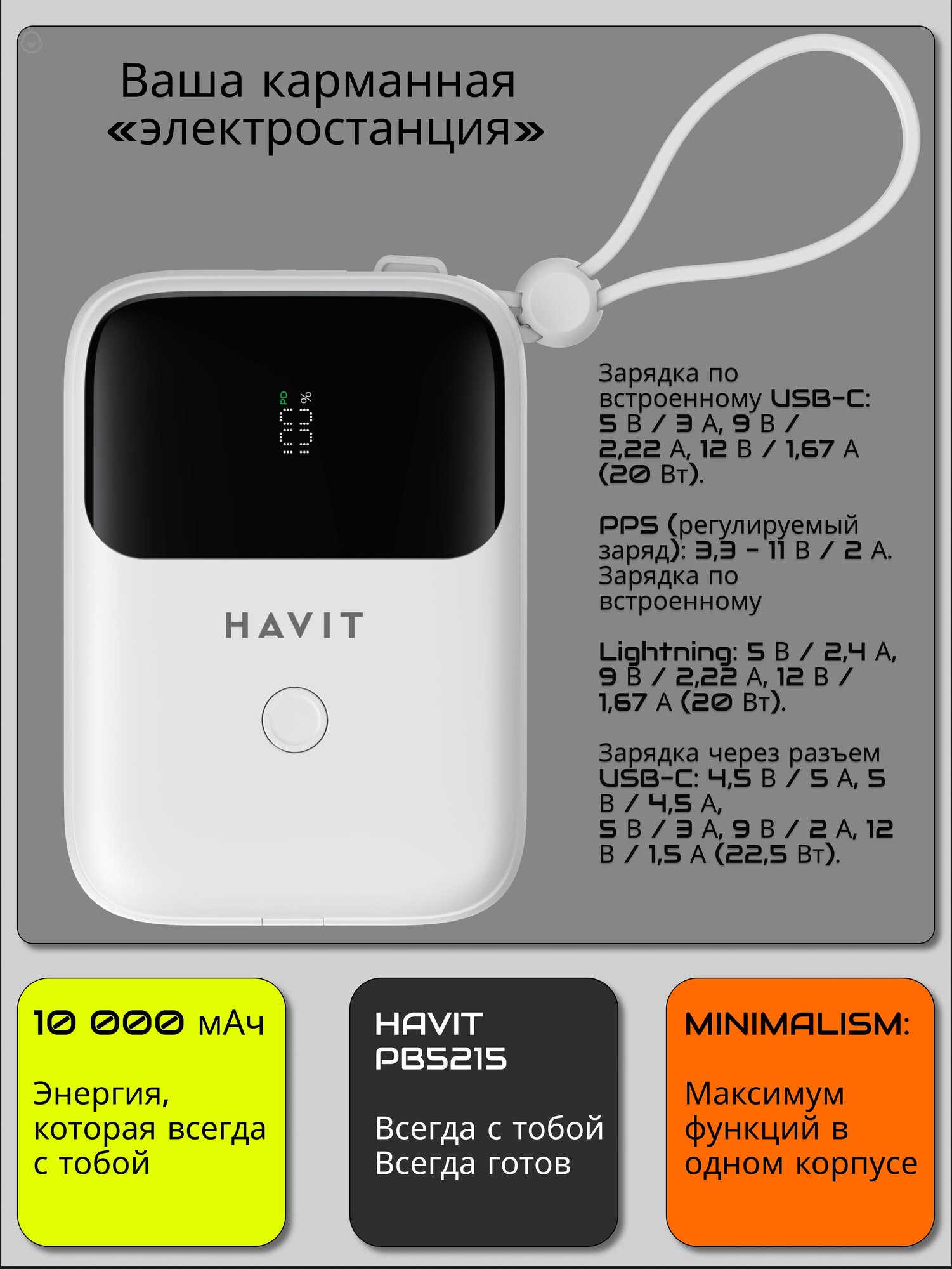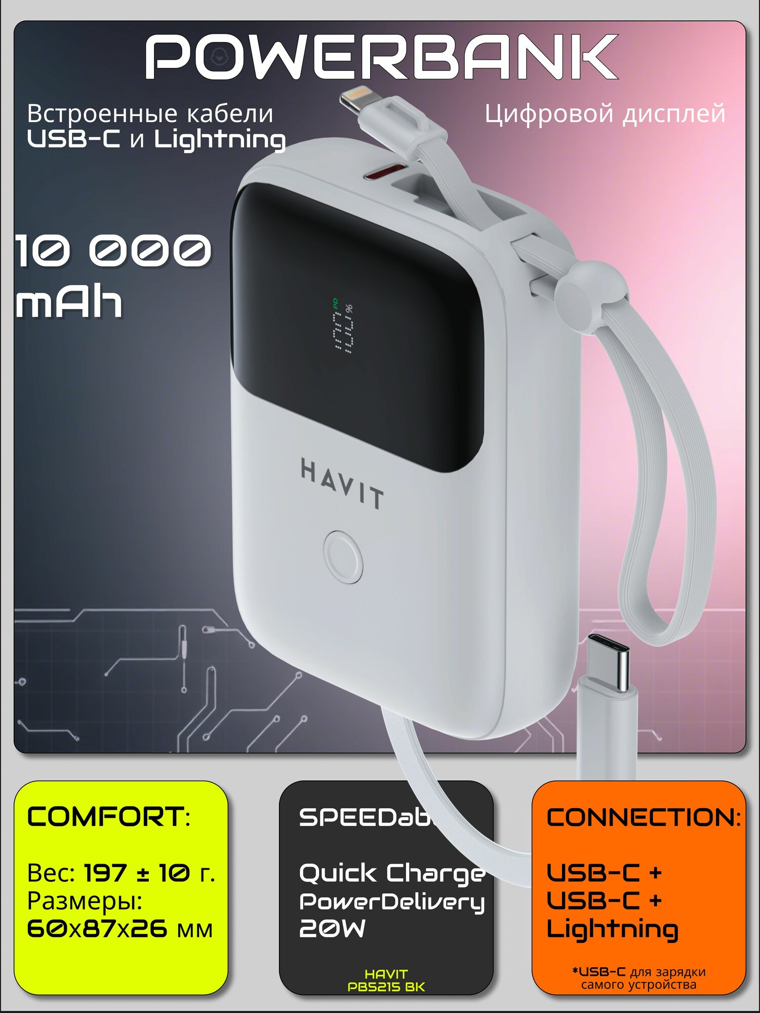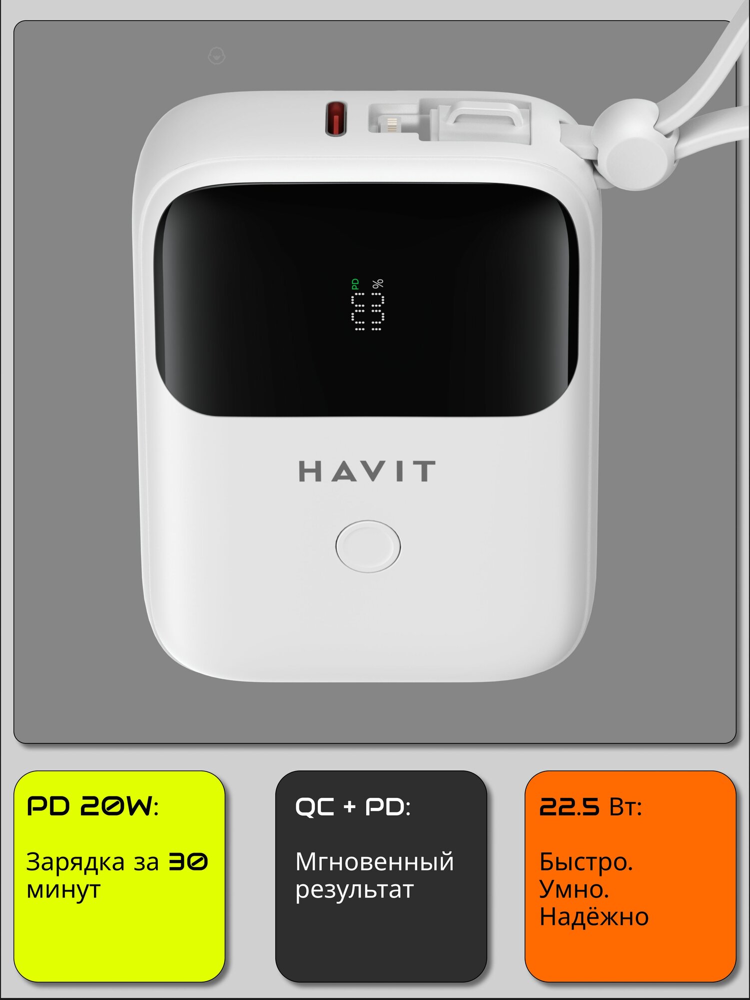 Портативный аккумулятор HAVIT PB5215, 10000mAh, с быстрой зарядкой, 20 W, дисплей: сравнение цен, характеристики, фото, актуальное наличие и цены.