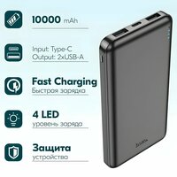 Купить Портативный аккумулятор Hoco J100 10000mAh черный, 2xUSB-A, поддержка Power Delivery и Quick Charge с доставкой по всей России.
