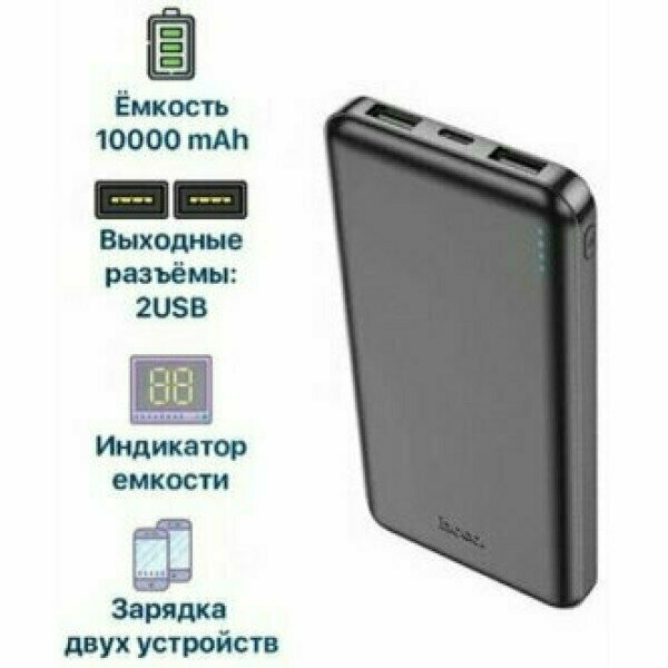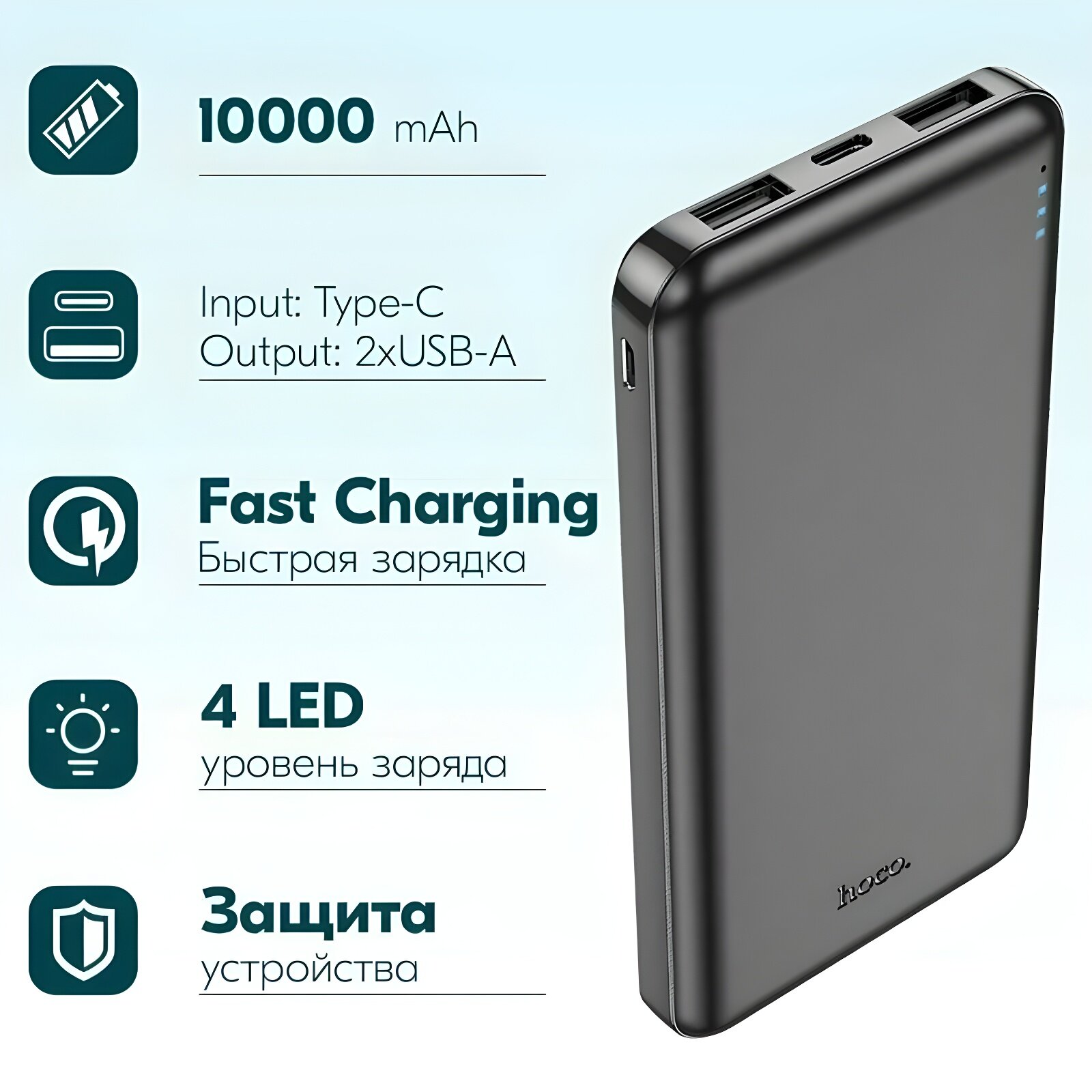 Портативный аккумулятор Hoco J100 10000mAh черный, 2xUSB-A, поддержка Power Delivery и Quick Charge: сравнение цен, характеристики, фото, актуальное наличие и цены.