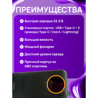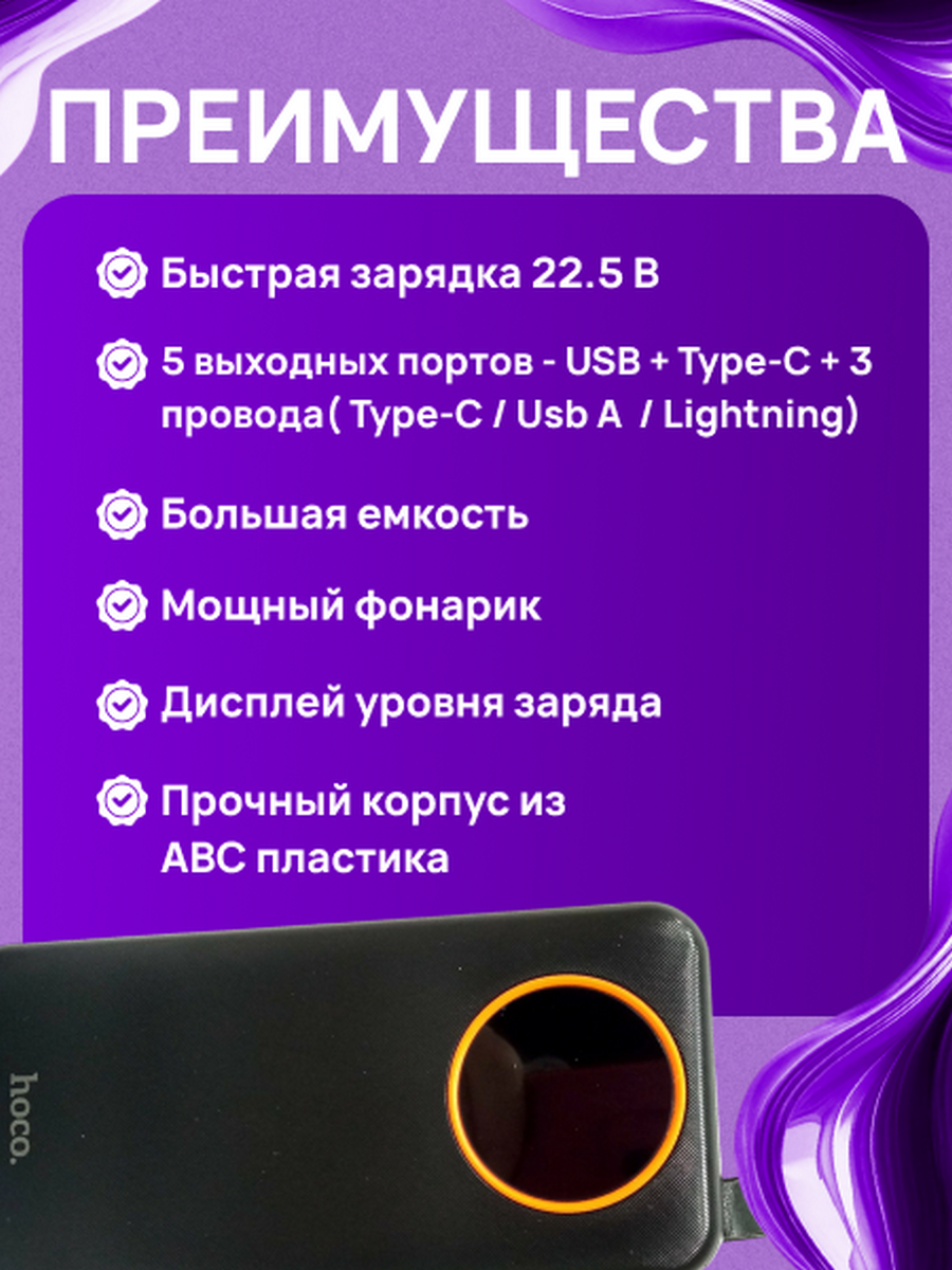 Портативный аккумулятор Hoco J223, Power Bank, 60000 mAh, с фонариком, черный: сравнение цен, характеристики, фото, актуальное наличие и цены.