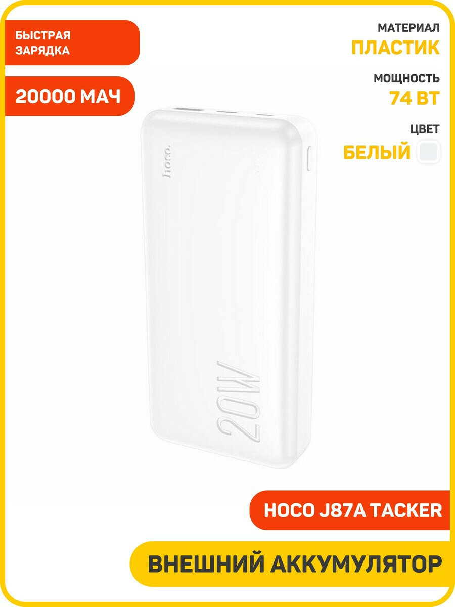 Технические характеристики внешнего аккумулятора 20000мАч с быстрой зарядкой QC 3.0 + PD Hoco J87A