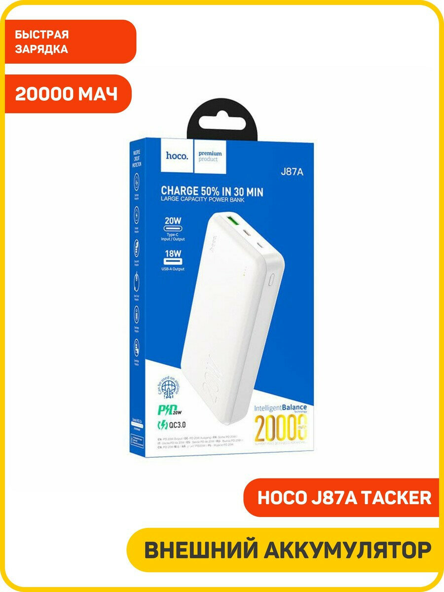 Преимущества внешнего аккумулятора 20000мАч с быстрой зарядкой QC 3.0 + PD Hoco J87A