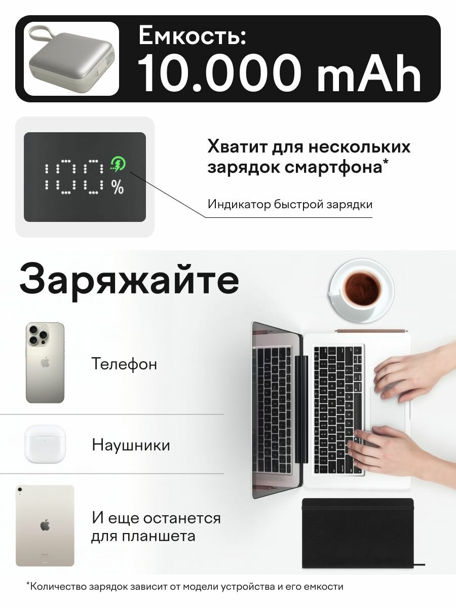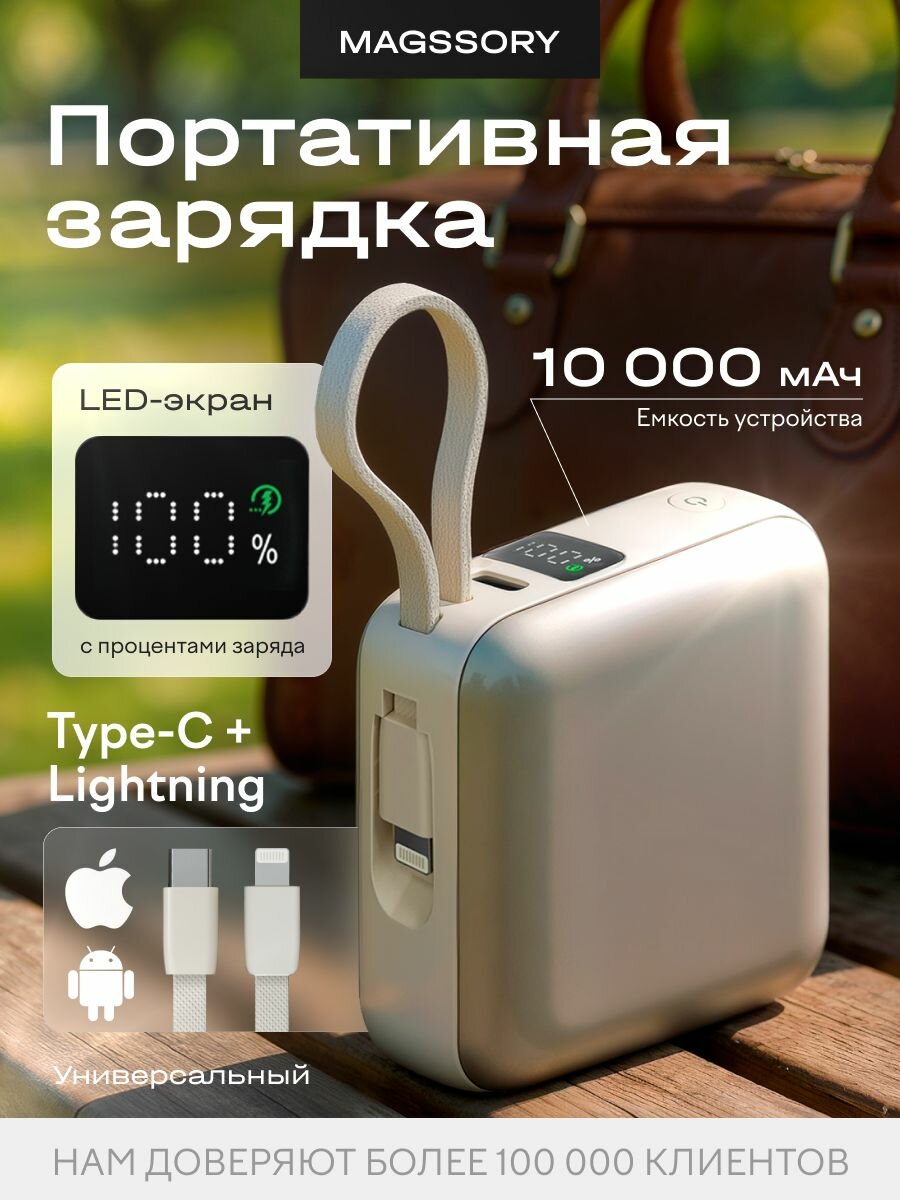 Купить Портативный аккумулятор Magssory PBN005, 10 000 мА·ч, USB Type-C, Lightning, серебристый с доставкой по всей России.