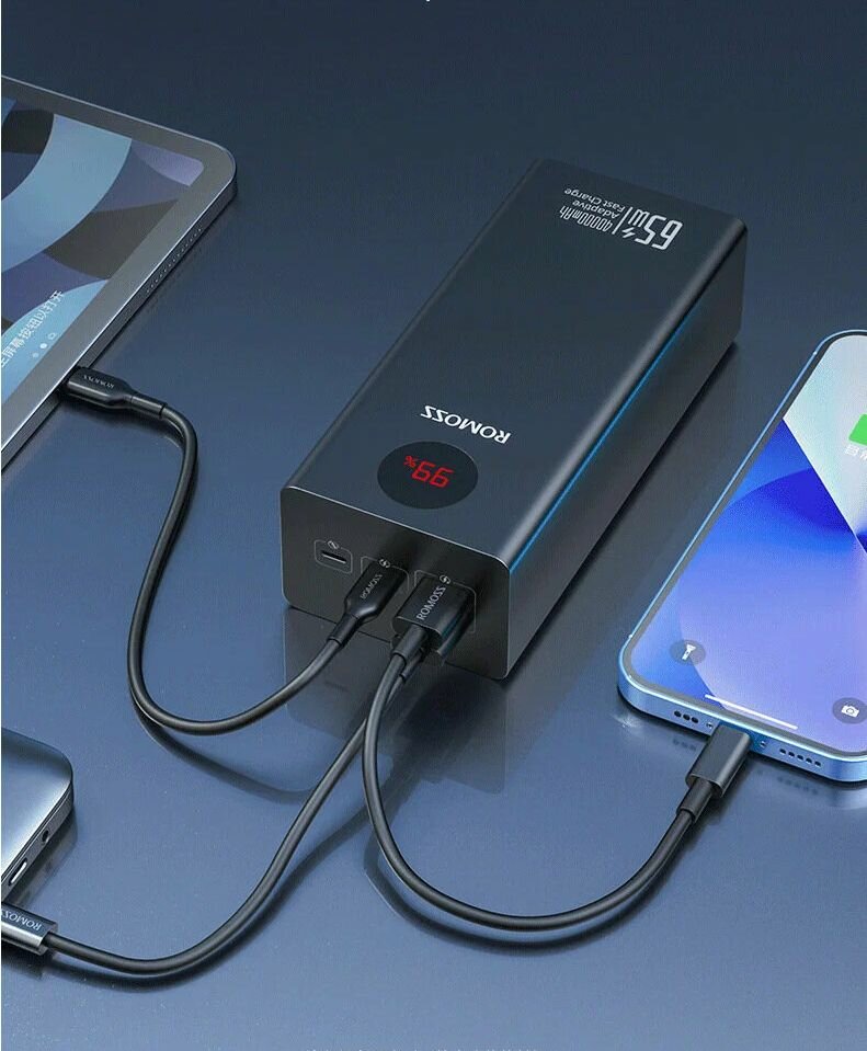 Портативный аккумулятор ROMOSS Power Bank, 40000 mAh, 65 W, быстрая зарядка, черный: сравнение цен, характеристики, фото, актуальное наличие и цены.
