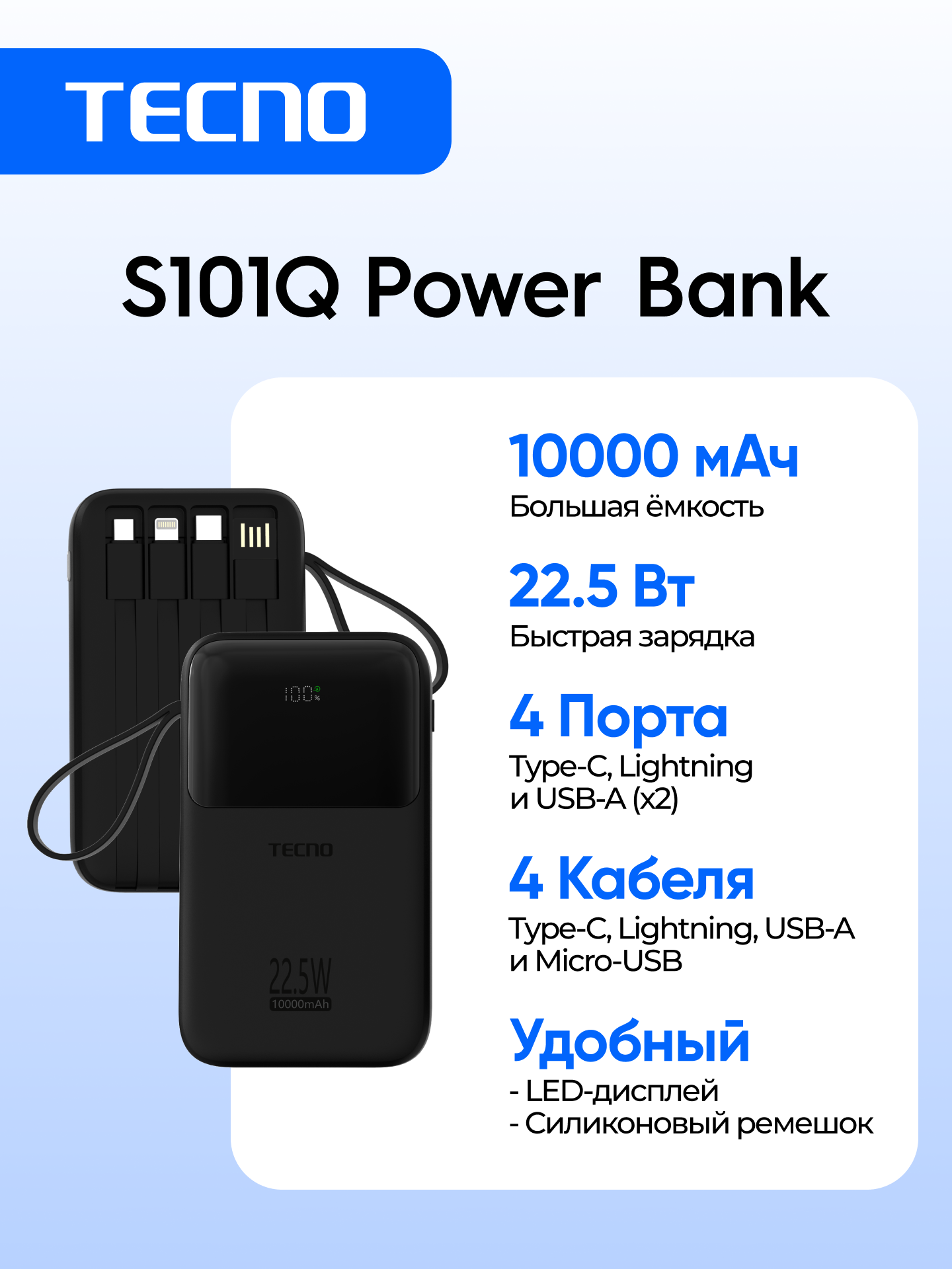 Купить Портативный аккумулятор TECNO Pocket S101Q, 10000 mAh, черный, 22.5 Вт с доставкой по всей России. Портативный аккумулятор TECNO Pocket S101Q, 10000 mAh, черный, 22.5 Вт: сравнение цен, характеристики, фото, актуальное наличие и цены.