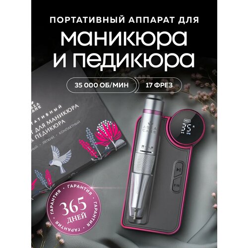Комплектация: Аппарат для маникюра - 1 шт; 17 Фрез; мешочек для хранения; кабель для зарядки; пилочка; баф; щеточка; инструкция; гарантийный талон