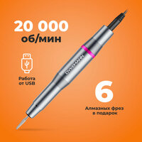 В комплекте аппарата предусмотрено 6 фрез для выполнения всех маникюрных работ, а функция реверса позволит сделать маникюр в домашних условиях, который не будет отличаться качеством от салона.