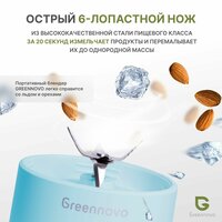 Портативный беспроводной блендер голубой GREENNOVO измельчитель для смузи, коктейлей, спортивного питания, детского питания, льда, орехов
