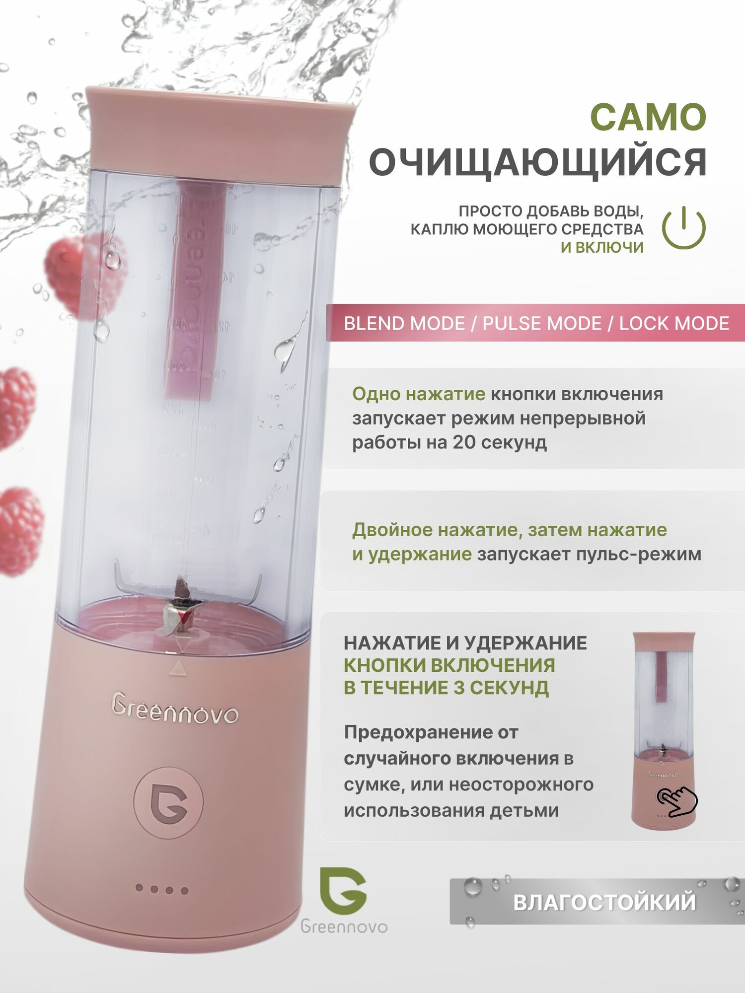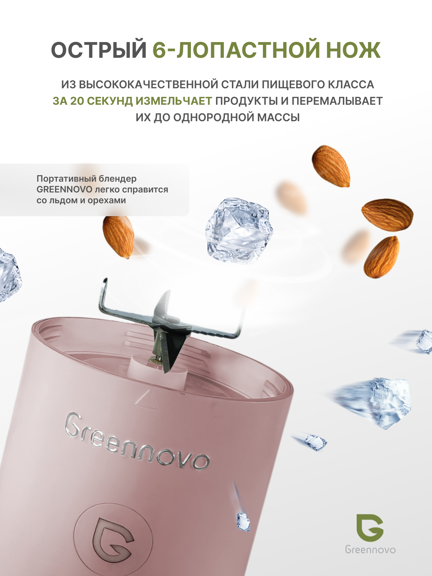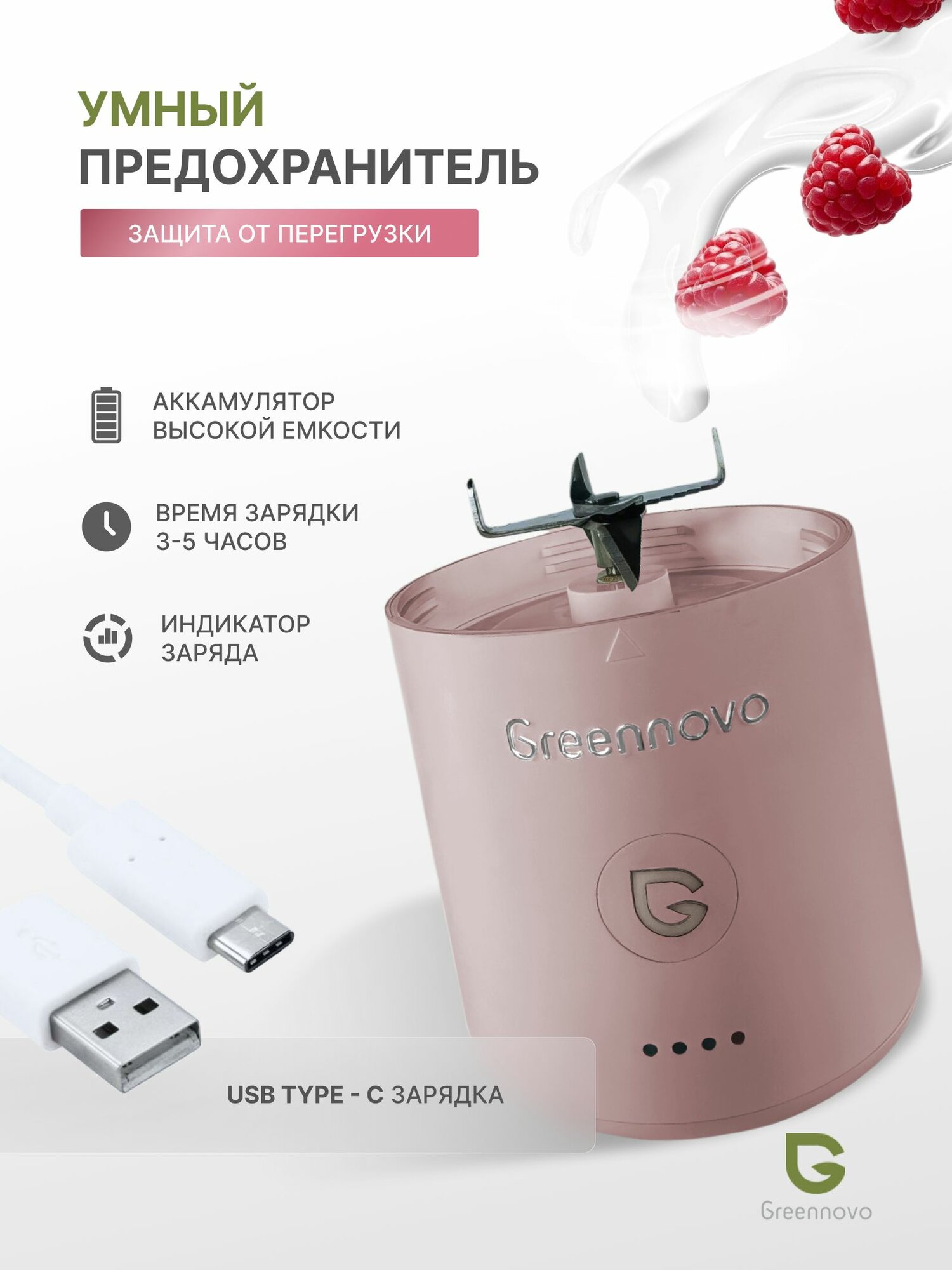 Портативный беспроводной блендер розовый GREENNOVO измельчитель для смузи, коктейлей, спортивного питания, детского питания, льда, орехов: сравнение цен, характеристики, фото, актуальное наличие и цены.