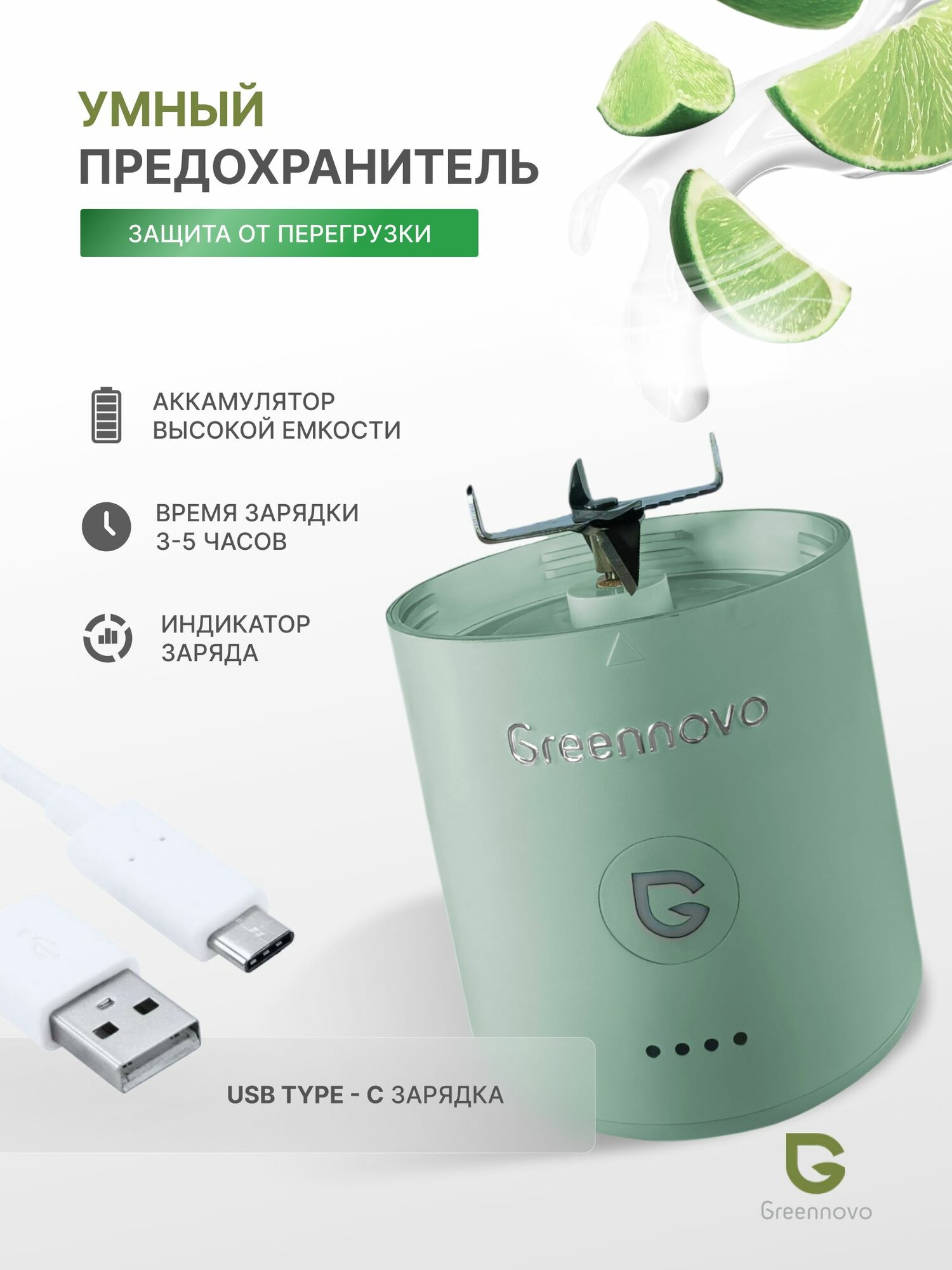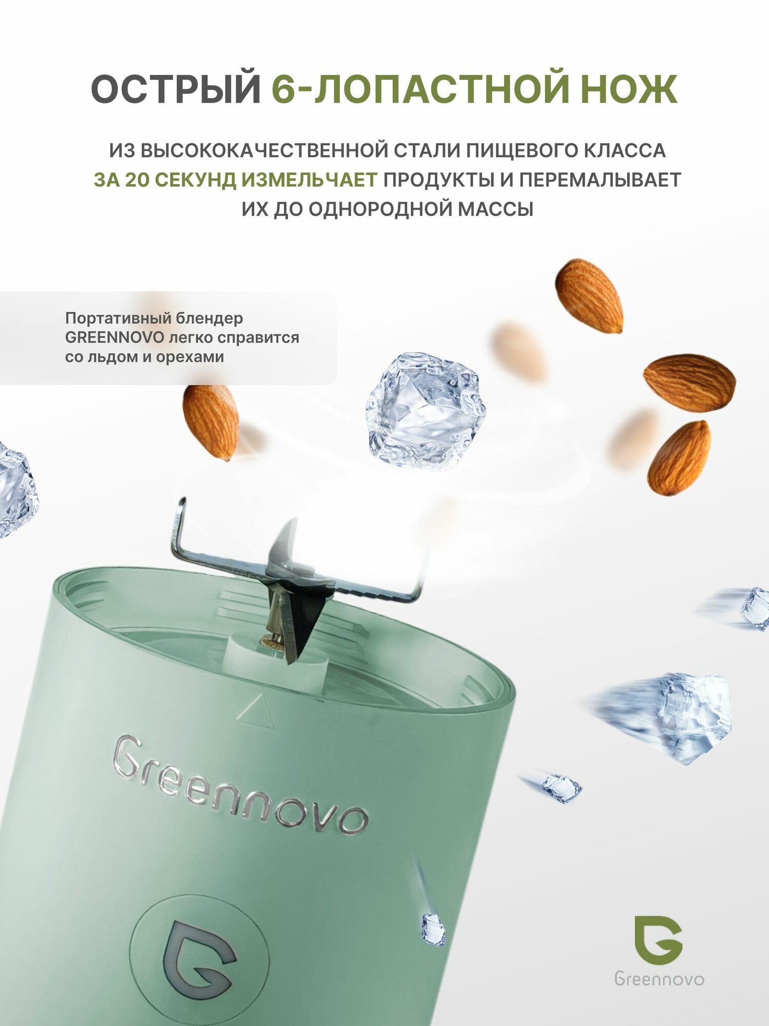 Портативный беспроводной блендер серо-зеленый GREENNOVO измельчитель для смузи, коктейлей, спортивного питания, детского питания, льда, орехов: сравнение цен, характеристики, фото, актуальное наличие и цены.
