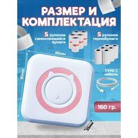 Термопринтер - 1 шт, USB Type C - 1 шт., термобумага - 5 рулонов., термобумага самоклеящаяся - 5 рулонов .