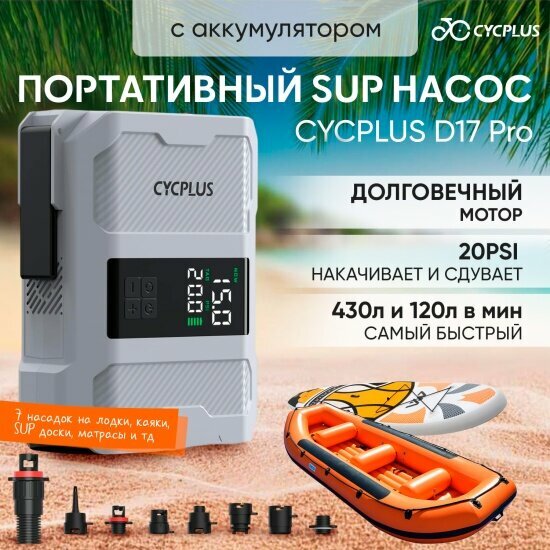 Беспроводной портативный насос для SUP и лодок Cycplus D17 Pro, 20 PSI, 430 л/мин: сравнение цен, характеристики, фото, актуальное наличие и цены.