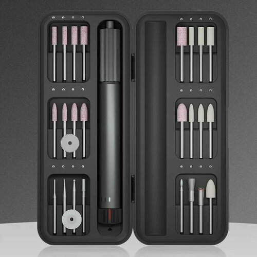 В комплекте идут абразивная головка (24 шт.), пильные диски (2 шт.) и крепление (1 шт.), предоставляя вам необходимые инструменты для различных задач. От обработки ручных поделок до шлифовки ногтей и очистки плат - эта машина справится с любым вызовом.