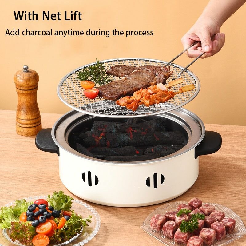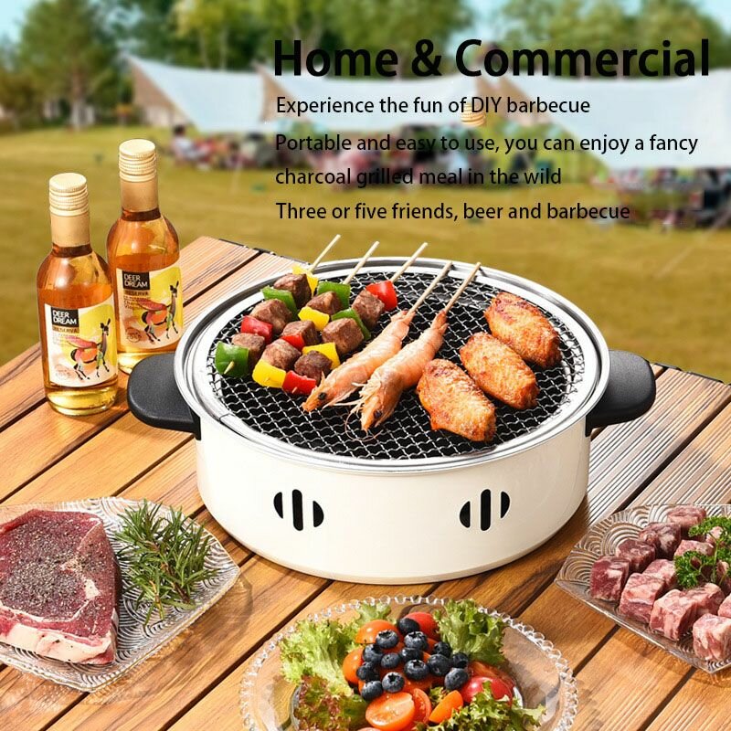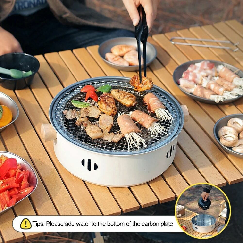 Портативный гриль-барбекю для дома, на открытом воздухе, для кемпинга, угольная печь для барбекю, бездымная сковорода для барбекю с антипригарной сеткой