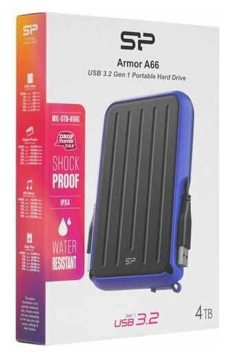 Портативный HDD Silicon Power Armor A66 4 TB USB 3.2, синий, черный: сравнение цен, характеристики, фото, актуальное наличие и цены.