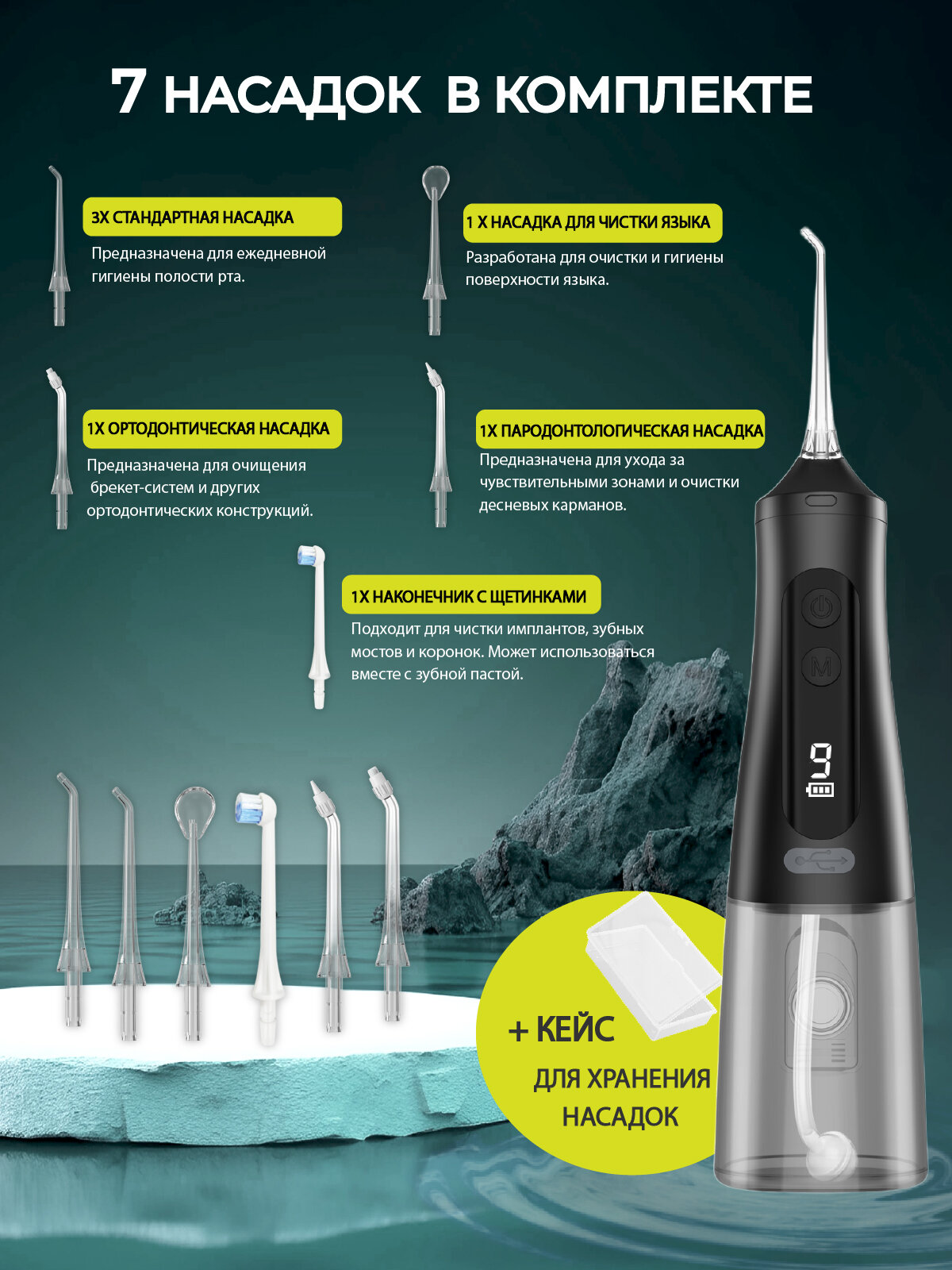 | Подробная комплектация | 1х Портативный ирригатор для полости рта RIDGEN RD-260 New 1х Дорожный чехол для хранения ирригатора 1х Кейс для хранения насадок 1х Кабель для зарядки TYPE-C 3x Стандартные насадки 1х Ортодонтическая насадка 1х Пародонтическая насадка 1х Насадка для чистки языка 1х Наконечник с щеткинками 1х Книга инструкций на русском языке |
