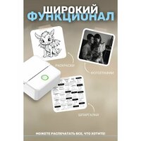 Карманный фотопринтер работает без чернил, все, что вам необходимо, чтобы напечатать – ваш смартфон. С помощью этого печатающего прибора можно распечатать фотографии и раскраски для детей, разный текст или картинки, этикетки или список дел и заметок. Также вы можете распечатать на самоклеющейся термобумаге разные пометки на детские игрушки, вещи, посуду для хранения и маркировать ящики. Это отличный выбор для детей, помогающий им расширить свои знания и обучение в школе. Помимо всего прочего, маленький принтер для фото помогает развивать такие способности, как фантазия и творчество, мышление и мелкая моторика. С помощью мобильной беспроводной технологией Bluetooth, принтер легко подключается к твоему устройству и позволяет распечатывать заметки прямо из телефона. Еще этот беспроводной фотопринтер очень пригодится школьникам и студентам для распечатки шпаргалок. Переносной мини термопринтер для телефона будет прекрасным подарком для любимых на 23 февраля, 8 марта, день рождения и просто без повода!