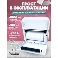 Портативный мини термопринтер белый