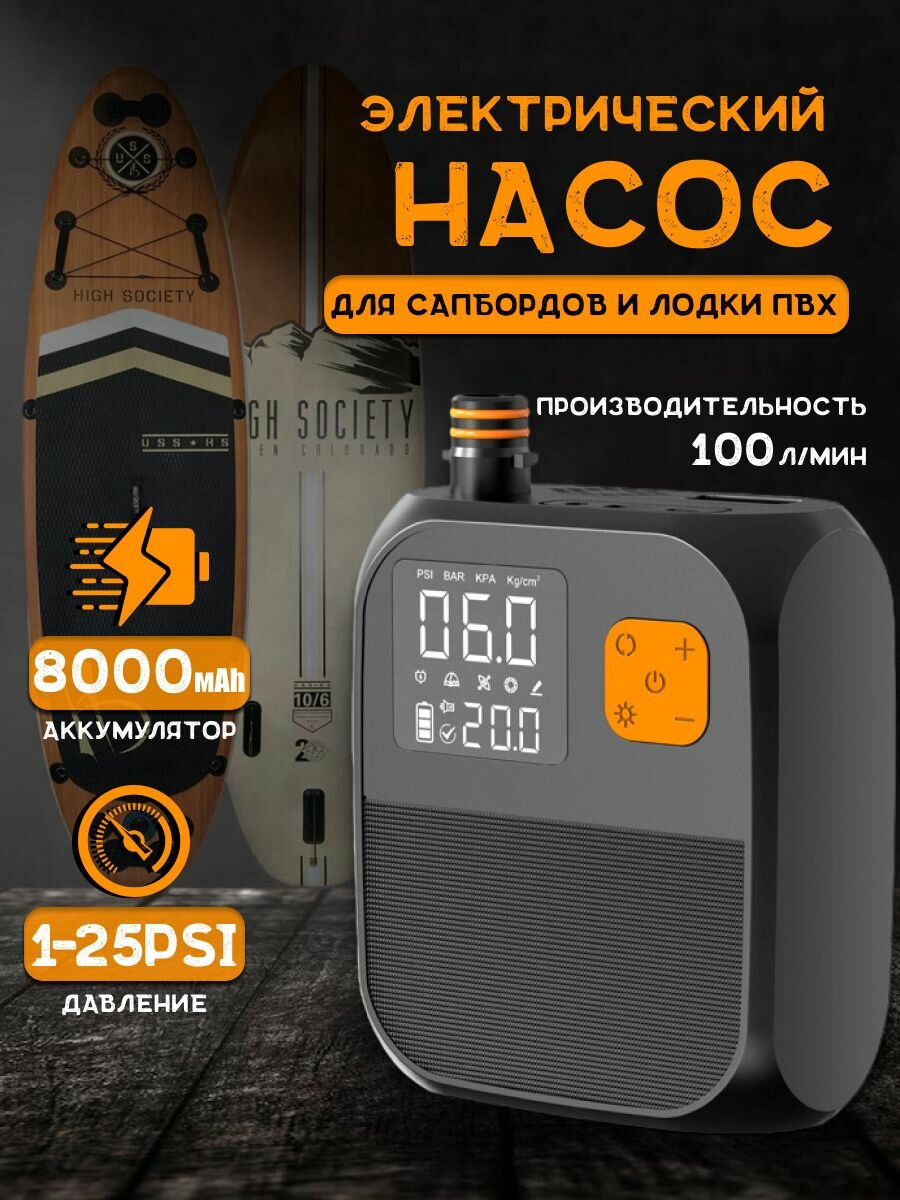 Этот продукт представляет собой беспроводной насос для накачивания КАЯКОВ, гребных досок, надувных матрасов и многого другого. Это просто необходимо для любителей активного отдыха и легко переносится для вашего удобства.