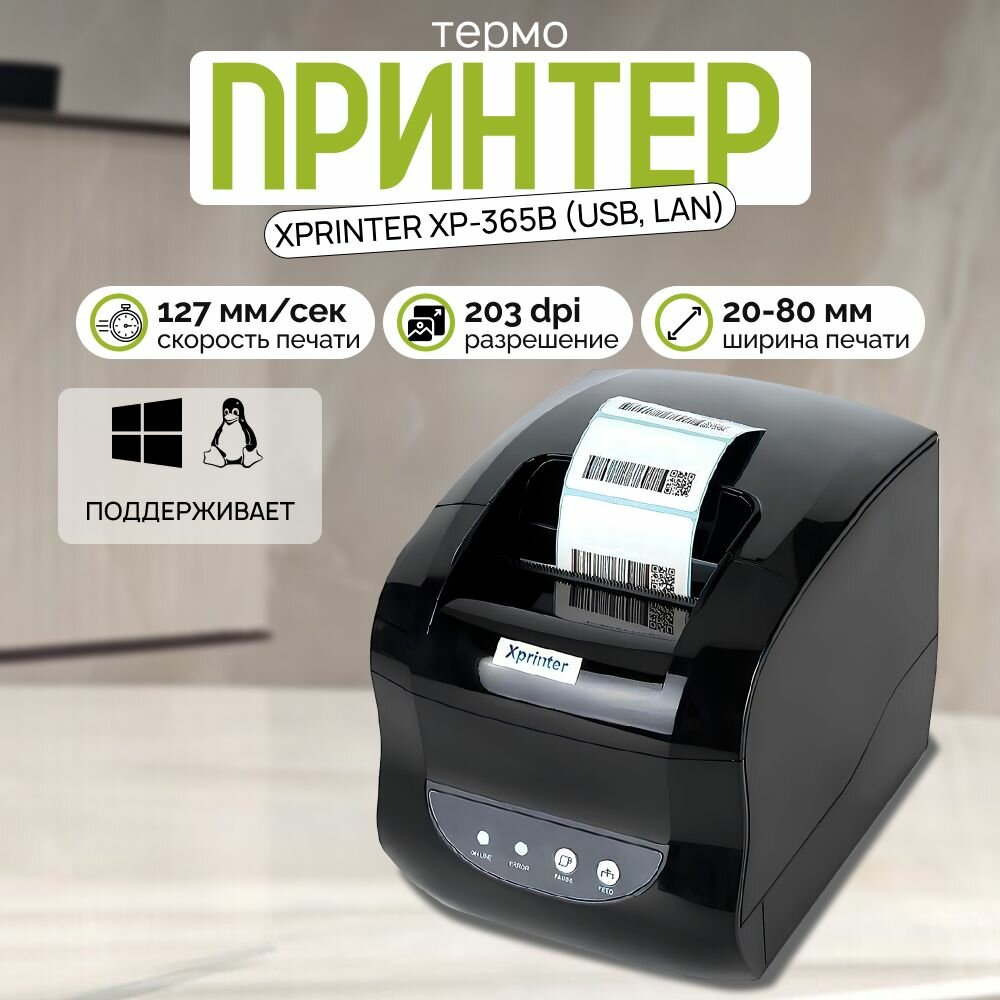 Портативный принтер чеков, наклеек и этикеток Xprinter XP-365B (USB, LAN) Черный: сравнение цен, характеристики, фото, актуальное наличие и цены.