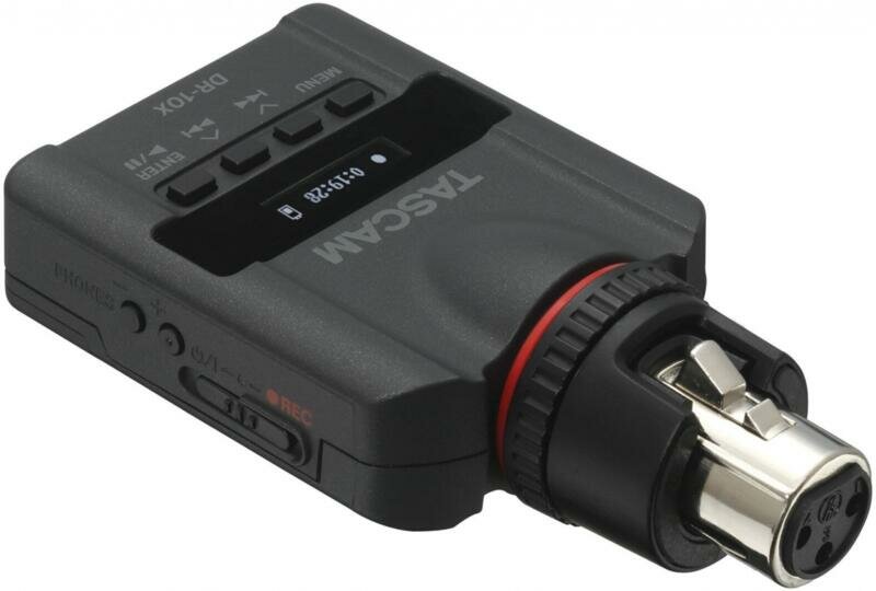 Tascam DR-10X портативный рекордер, прямое XLR подключение к динамическим и электретным микрофонам без кабеля. TASCAM DR-10X - это портативный аудиорекордер для ручных микрофонов. Запись производится на карты microSDHC в формате WAV(BWF), карты от 4GB до 32GB. Устройство имеет дополнительный выход для подключения наушников и USB порт для подключения к ПК. Запись производится с разрешением 24-bit/48 kHz. Питание рекордер получает от батарейки или аккумулятора, размера "ААА". До 10 часов автономной работы в условиях непрерывного использования. Устройство на лету оцифровывает моно-сигнал с микрофона. В рекордере есть автоматическая и ручная регулировка уровня усиления, лимитер и обрезной НЧ-фильтр. Размеры рекордера составляют 94,4 х 52 х 28 мм.