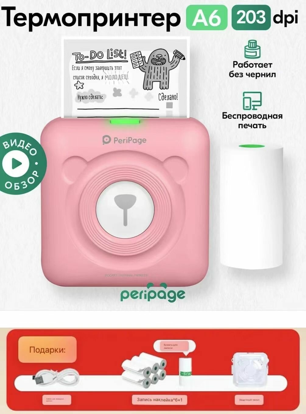 Портативный термопринтер PeriPage A6, мини принтер для телефона, мобильный карманный, для печати этикеток, наклеек, стикеров и заметок, разрешение 203 dpi, розов: сравнение цен, характеристики, фото, актуальное наличие и цены.