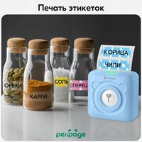 Купить Портативный термопринтер PeriPage A6, мини принтер для телефона, мобильный карманный, для печати этикеток, наклеек, стикеров и заметок, разрешение 304 dpi, голубой с доставкой по всей России.