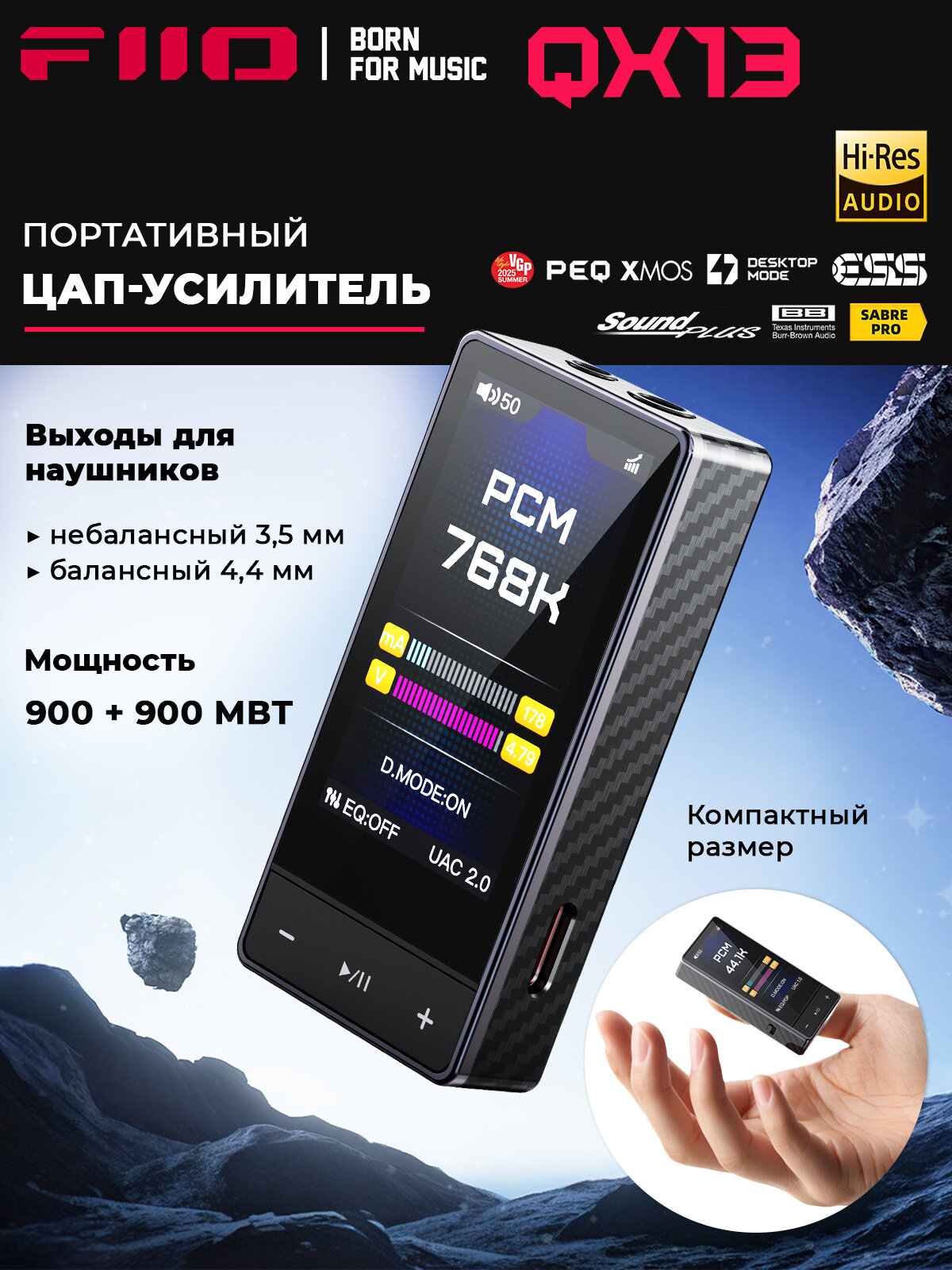 Портативный ЦАП и усилитель для наушников FIIO QX13 (F3011Q) Black, с 8 каналами, 10-полосный эквалайзер: сравнение цен, характеристики, фото, актуальное наличие и цены.