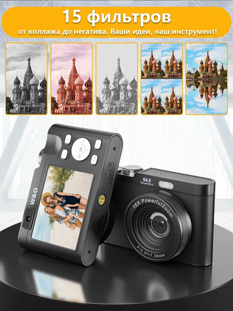 Портативный цифровой фотоаппарат W&O, 64Мп, 2.8″, 1080p, USB: сравнение цен, характеристики, фото, актуальное наличие и цены.