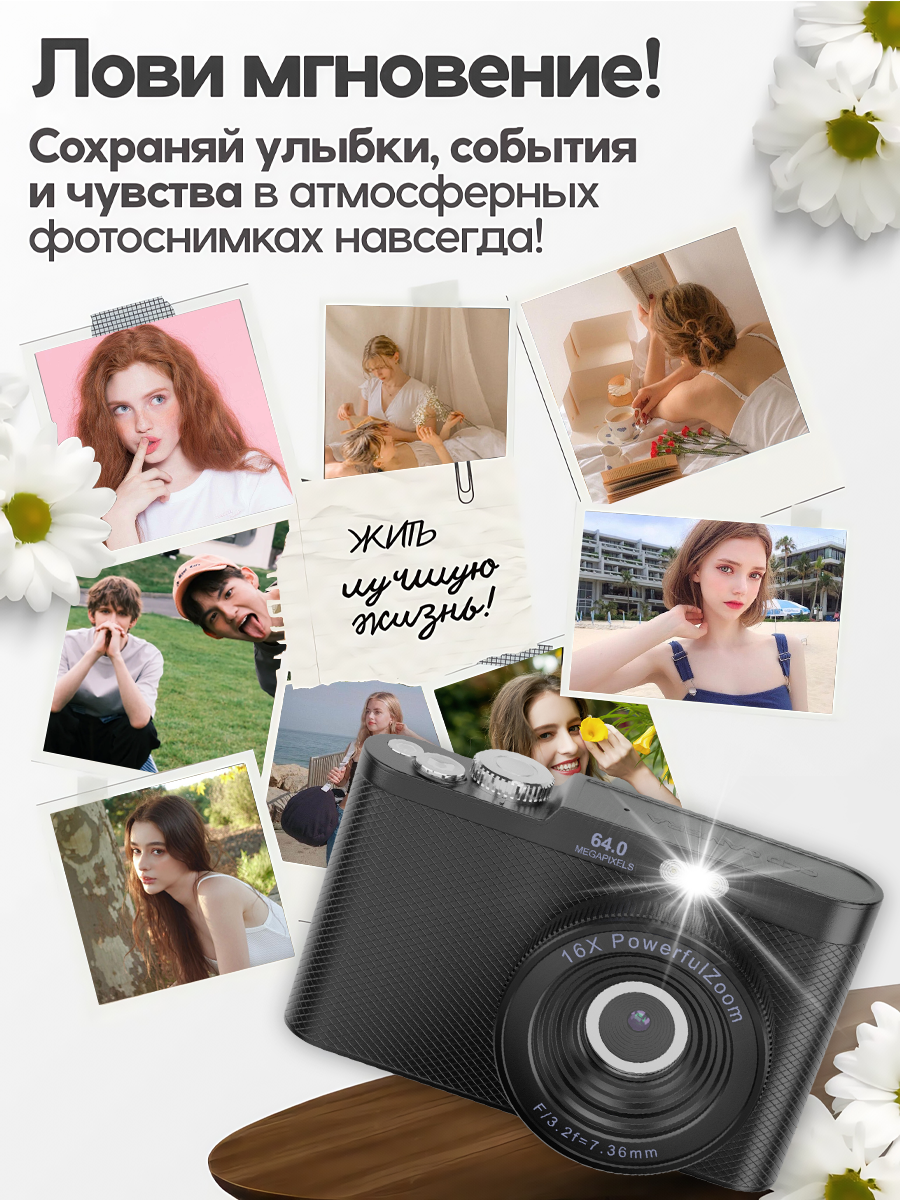 Купить Портативный цифровой фотоаппарат W&O, 64Мп, 2.8″, 1080p, USB с доставкой по всей России.