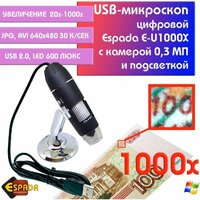 Купить Портативный цифровой USB-микроскоп Espada U1000X c камерой 1,3 МП и увеличением 1000x с доставкой по всей России.