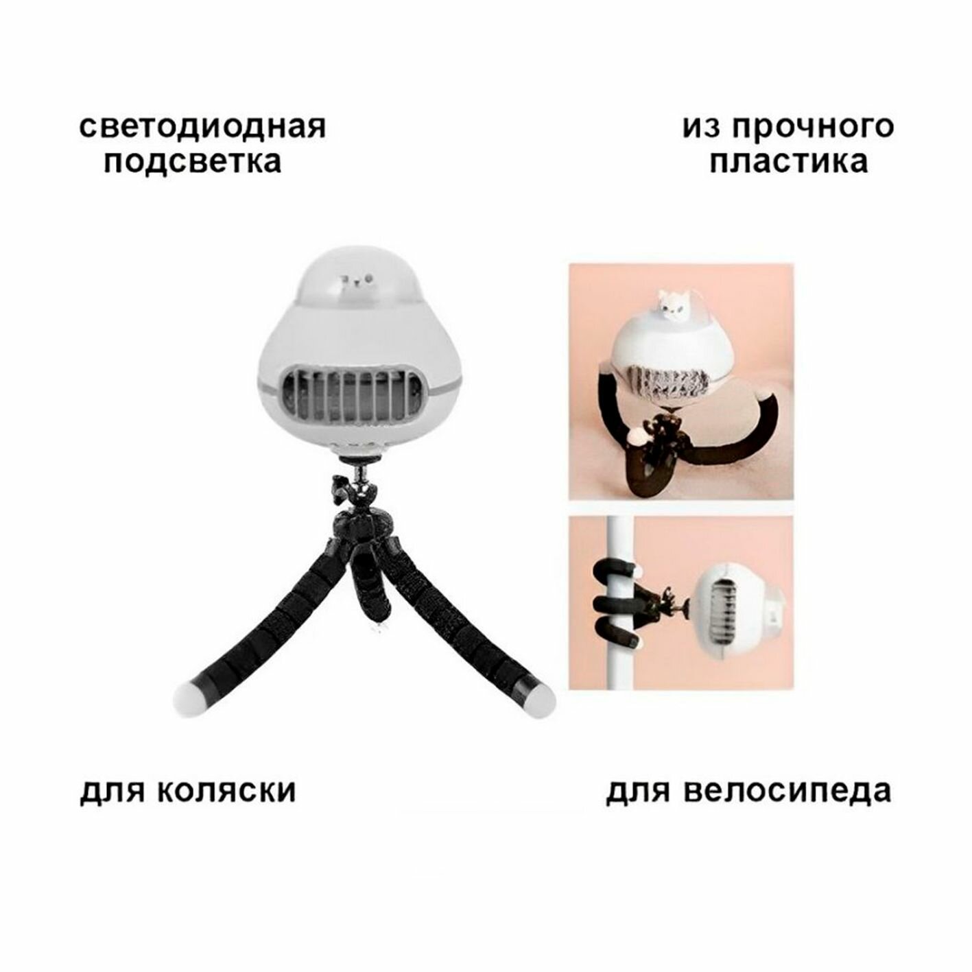 Портативный вентилятор с гибким штативом-осьминогом