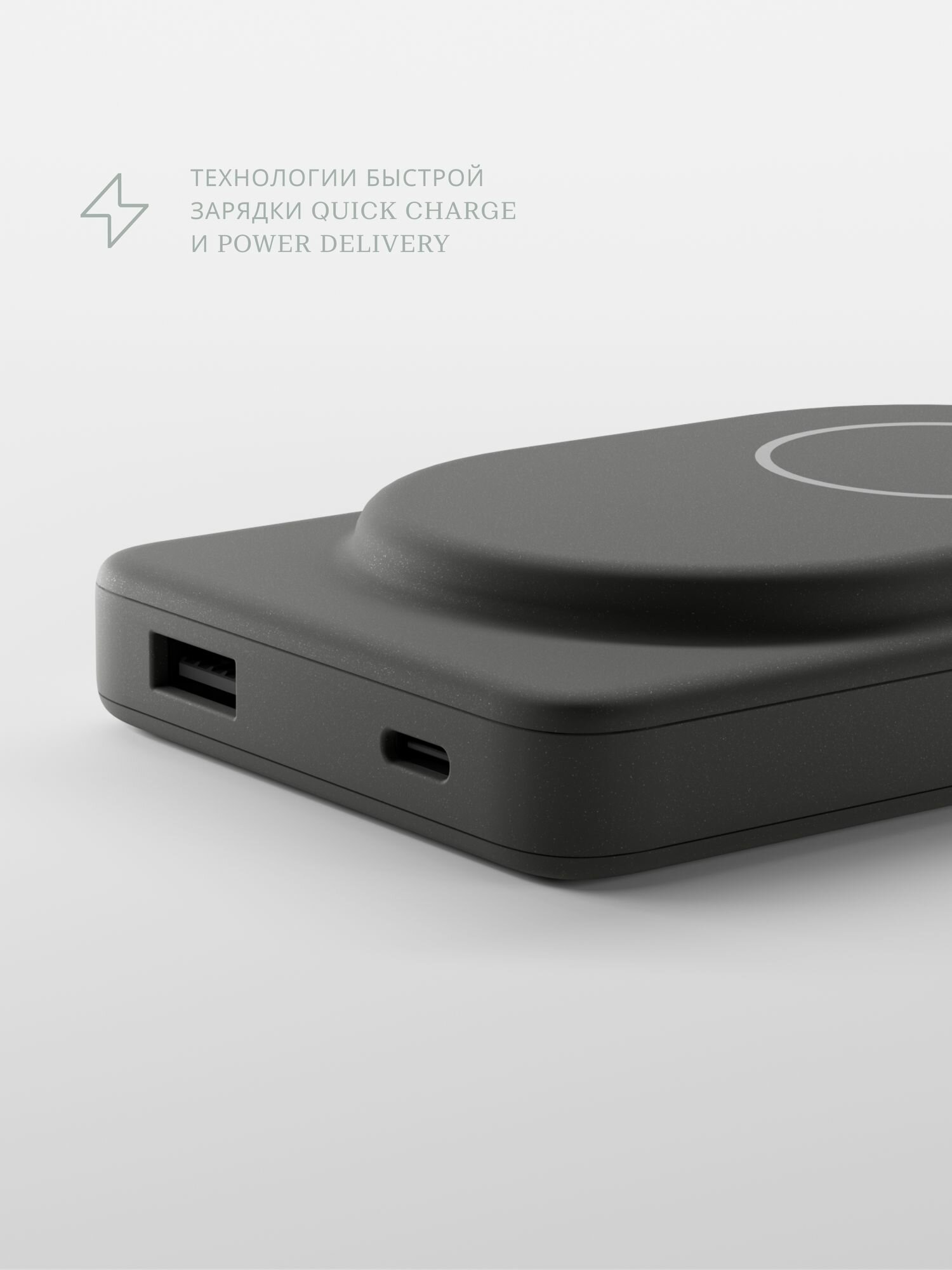 Купить Портативный внешний аккумулятор Пауэр Банк COMMO AEON с поддержкой беспроводной зарядки 10000 мАч, PD 20 Вт, графитовый с доставкой по всей России.