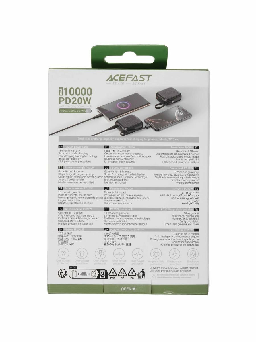 Купить Портативный внешний аккумулятор с кабелем ACEFAST M15 PD20W Power Bank With Cable 10000Mah. Цвет: черный с доставкой по всей России.