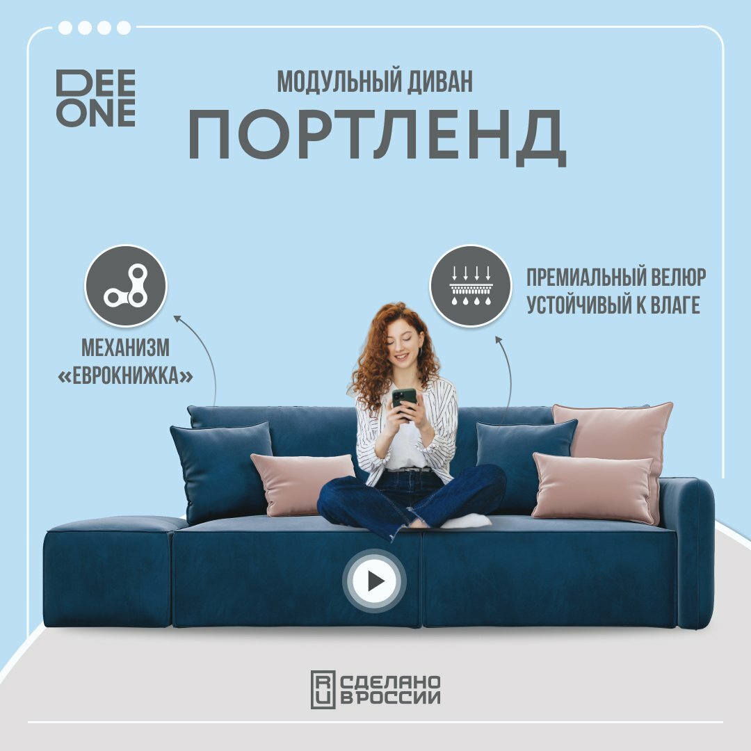 Диван «Портленд» представляет собой мультифункциональный трансформер, состоящий из автономных элементов. Комбинация секций предоставляет практически безграничное пространство вариантов для обустройства любой площади помещения — от большой гостиной дома до маленькой детской.