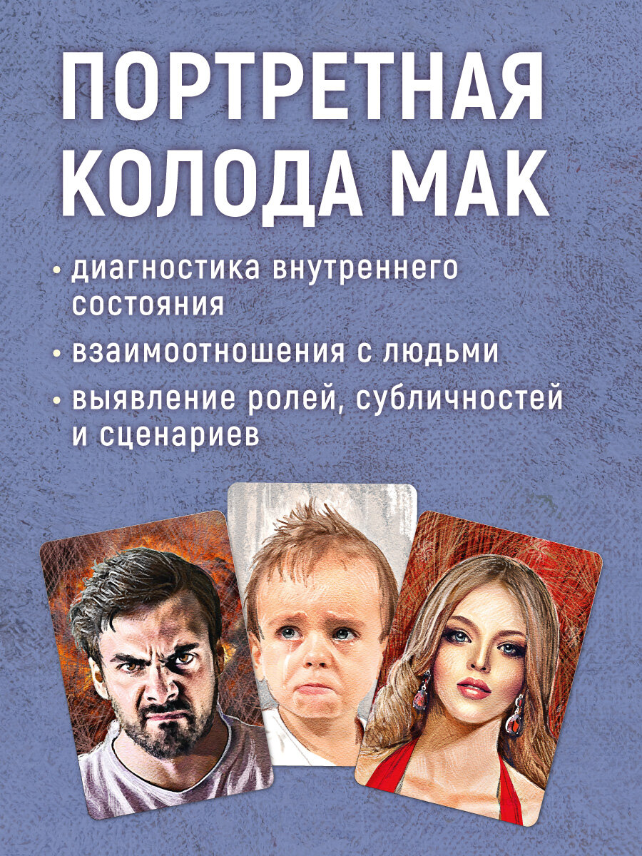 Метафорические ассоциативные карты "Портретная галерея" помогают исследовать вопросы взаимоотношений с людьми, с собой, с окружающим миром. В составе колоды «Портретная галерея» 100 карт: 20 детских, 40 женских и 40 мужских. Колода может применяться в работе со взрослыми, с детьми и подростками. Портреты можно использовать как самостоятельный инструмент, так и в тандеме с другими колодами. Какие вопросы можно рассматривать в работе с этой колодой: Самоощущение человека, его самоопределение, в том числе половая идентификация; Взаимодействие субличностей человека между собой и с окружающим миром; Взаимоотношения с другими людьми; Родовые сценарии и составление генограммы; Расстановки на столе и многие другие. Инструкция в комплекте. Автор: Ирина Федорова. Художник: Александр Соловьев.